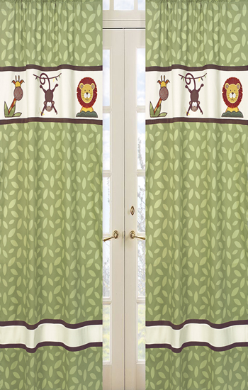 Jungle Time Window Curtain Panel Set will help complete the look of your Sweet Jojo Designs room. These window treatments instantly change the look and feel of any room, adding layers of warmth and style. Each panel measures 42in. x 84in. Fits standard rods up to .75 inches in diameter.