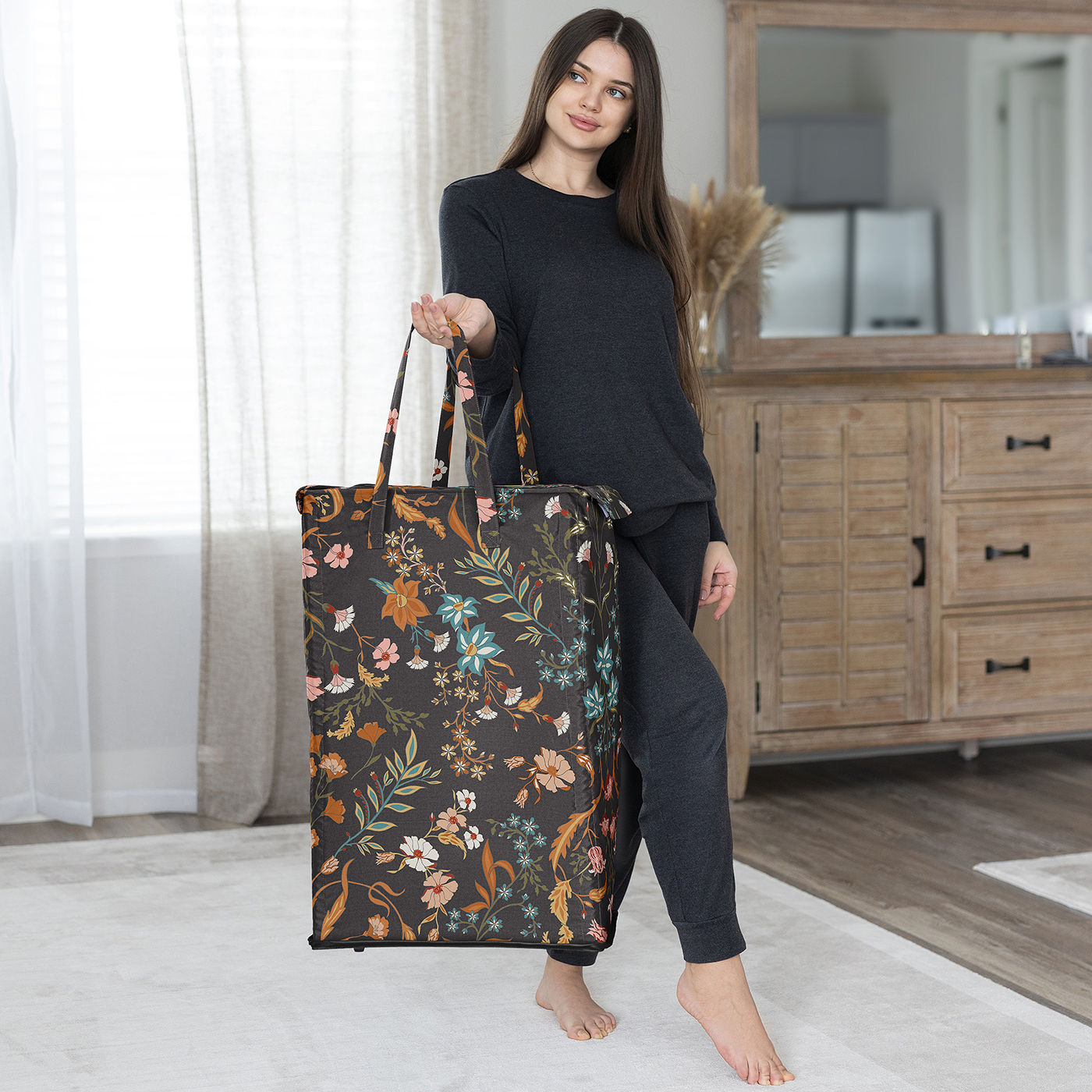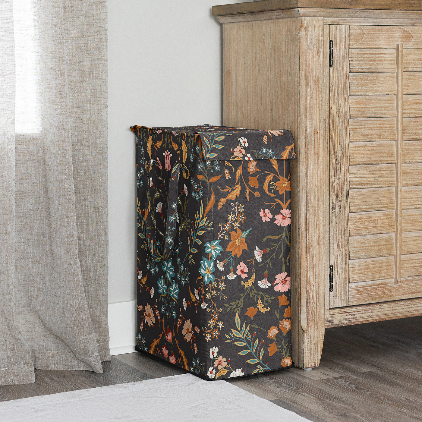Includes: (1) Modern Laundry Hamper: 16in. x 11in. x 25in. and (4) Foldable Glass Fiber Rods, 24in. EachFeaturing exclusive canvas fabric of black, rust orange, teal turquoise blue, green, pink and yellow boho wildflower vintage floral bohemian farmhouse daisy leaves botanical paisley leaf flower garden indie rustic cottagecore print. To wash fabric, remove rods and machine wash cold, tumble dry low.This foldable hamper sorter is the perfect laundry organizer for every member of your family. Tote your dirty clothes around using the 2 reinforced handles with durable stitching without worry of handles tearing. When you’re not using the hamper and ready to save some space, simply remove the fiber rods from each of the four corners of the bin to collapse down into a small rectangle to store easily under the bed, in your closet, in your bathroom cabinet, or next to your dresser.The rectangular shape of the clothes hamper gives a sleek and practical look that compliments any interior design style. Get one for every room in the home – ideal for nurseries, bedrooms, playrooms, laundry rooms, guest rooms, bathrooms, kids bed rooms, closets, dens, attics, basements, and college dorms. If you want to make laundry day a breeze, buy two for each room so dark and light dirty clothing can be sorted, organized and ready to wash before you bring it to the machine.Makes the perfect gift to coordinate with Sweet Jojo Designs nursery bedding, adult duvets and comforter sets, changing pad covers, crib sheets, home decor accessories, storage solutions and window treatments! It can also double as a functional decorative alternative to gift bags or wrapping paper by placing your birthday, baby shower or gender reveal presents within the hamper itself so it can later be reused by the recipient.Item# Laundry-WildFloral-BK
