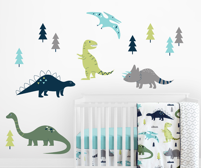 Blue and Green Mod Dinosaur large wall decals by Sweet Jojo Designs will add a unique charm to your home. These high quality stickers have a peel and stick backing making them super easy to apply. They are removable and repositionable, giving you the perfect finishing touch to any accent wall. Easier to use than paint or traditional wallpaper, this effortless wall decor will allow your creativity to shine through by transforming the walls in any room into exceptional works of art.