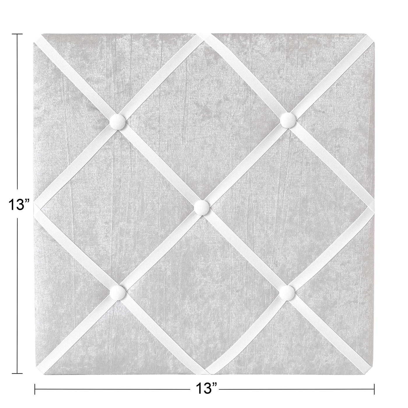 Grey Lace fabric memo board with button detail will show off postcards, notes and photos. Just slip your mementos behind the decorative ribbon to create an engaging piece of original wall art. These adorable memo boards by Sweet Jojo Designs have been created to coordinate with the matching children's bedding sets.