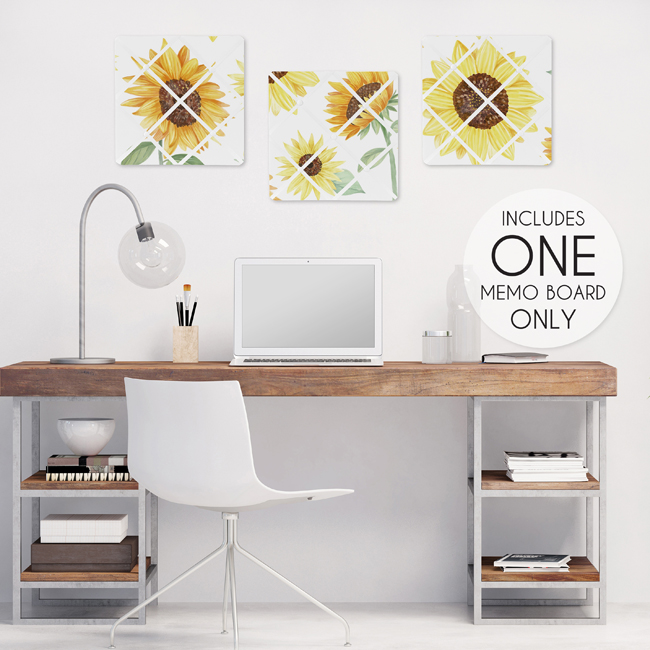 Sunflower fabric memo board with button detail will show off postcards, notes and photos. Just