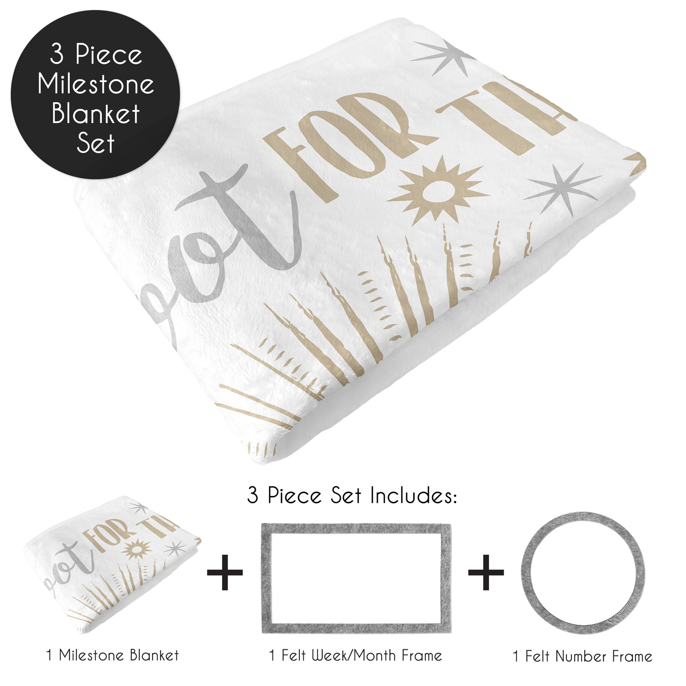 Sweet Jojo Designs Milestone Baby Blankets offer the perfect photo op prop to help you capture monthly growth achievements of your infant. Each blanket features the numbers 1-12 and two soft frames that you can easily place over the numbers to correspond with your little one’s age in months and weeks. They make an adorable photography backdrop for all your newborn’s photos as you celebrate each month of their first year. These lightweight blankets are a must have for any new parent and they are the best keepsake baby shower gift or present. At your child’s first year birthday party, look back on the pictures taken each month and see how much they’ve changed. When you aren’t busy making and capturing precious memories to share with friends, family and followers on social media, this versatile development tracker doubles as a snuggly security blanket, nursery receiving swaddle, tummy time floor mat, or even a stroller or car seat cover.