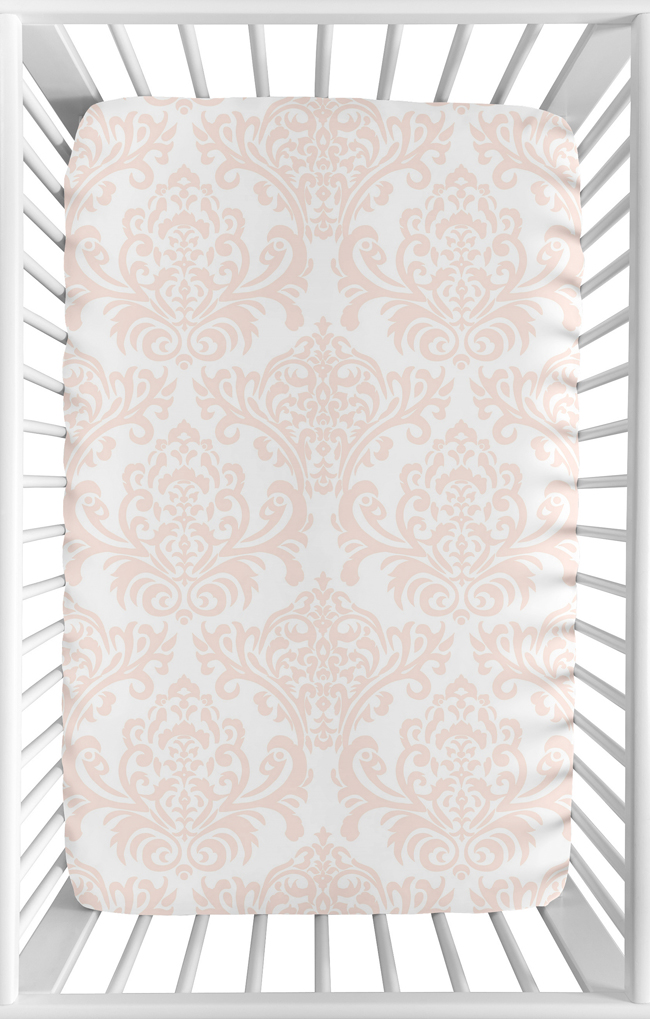 • Brushed Microfiber - Blush Pink and White Damask Print