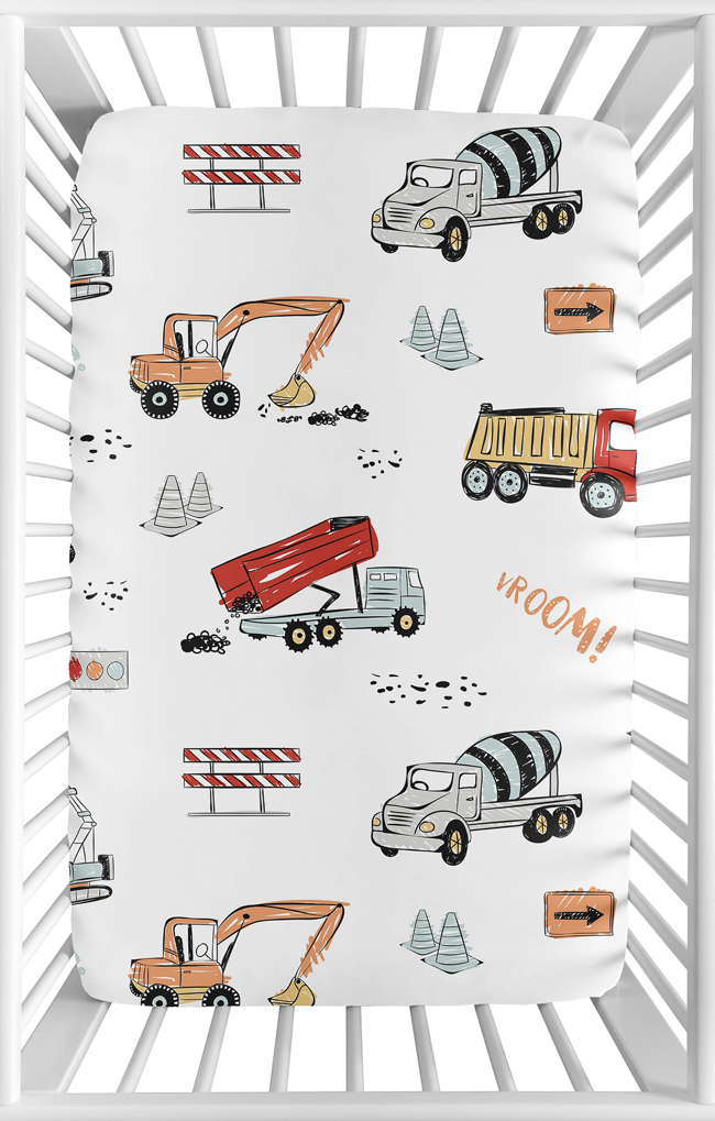 Love the fabric style? Sweet Jojo Designs also makes bedding and decor accessories.Item# MiniSheet-Construction-RD-BU-PRT