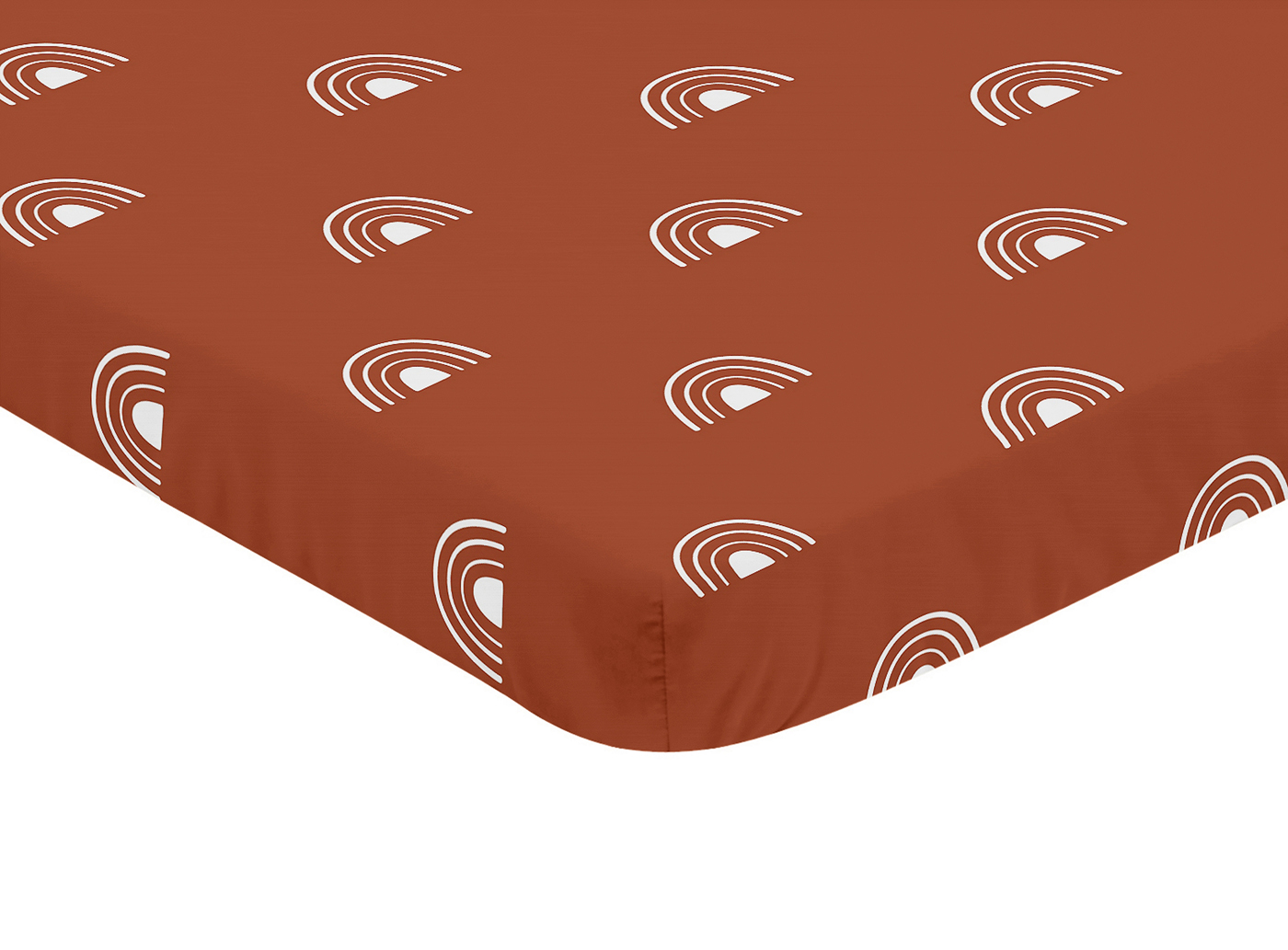 Brushed Microfiber - Rust Orange and White Boho Rainbow Print