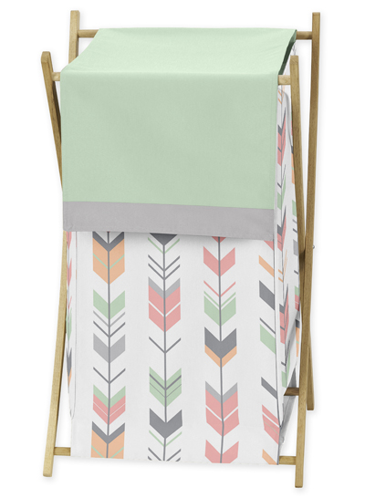 Sweet Jojo Designs coordinating stylish hamper matches exclusively with their bedding sets. Now Sweet Jojo Designs has found a way to make even the laundry look adorable. The laundry clothes hamper includes a removable body, hamper frame and a mesh inner bag that fits inside the hamper and lifts out easily for convenience when emptying and toting the laundry. The fabric flap that covers the hamper opening is easily flipped out of the way when needed. The collapsible wooden frame can be folded up for compact storage in a closet or the laundry room.