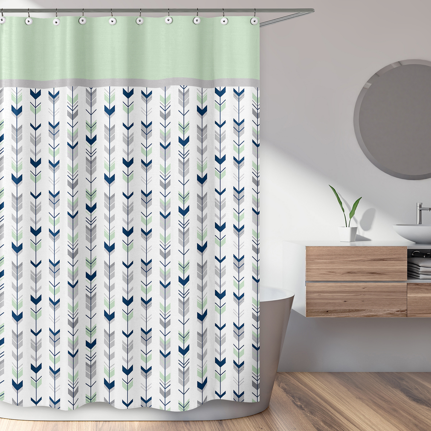 Grey and Mint Mod Arrow shower curtain is an easy way to create a bathroom makeover. Add a touch of style and a splash of color to your bathroom with this designer collection.