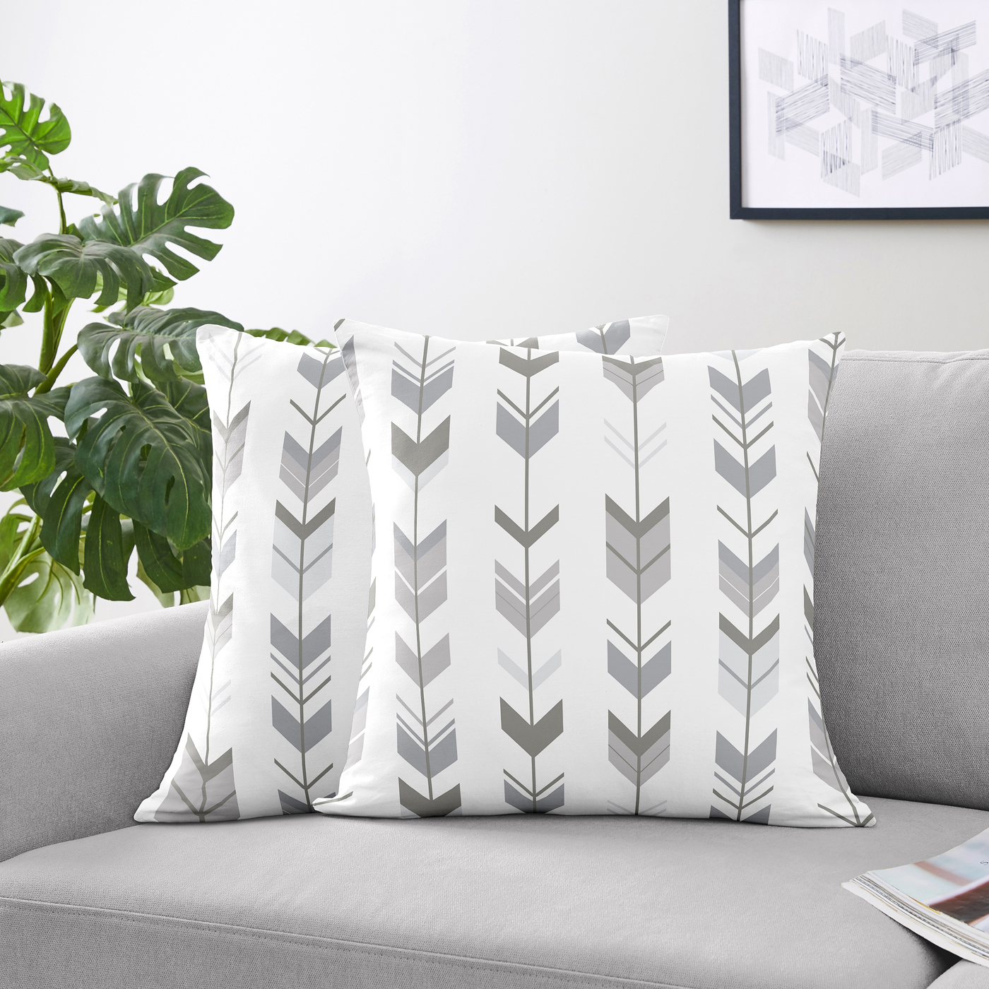 Grey and White Mod Arrow Collection throw pillows will help complete the look of your Sweet Jojo Designs room. These adorable accent pillows can be used on a bed, chair or sofa.