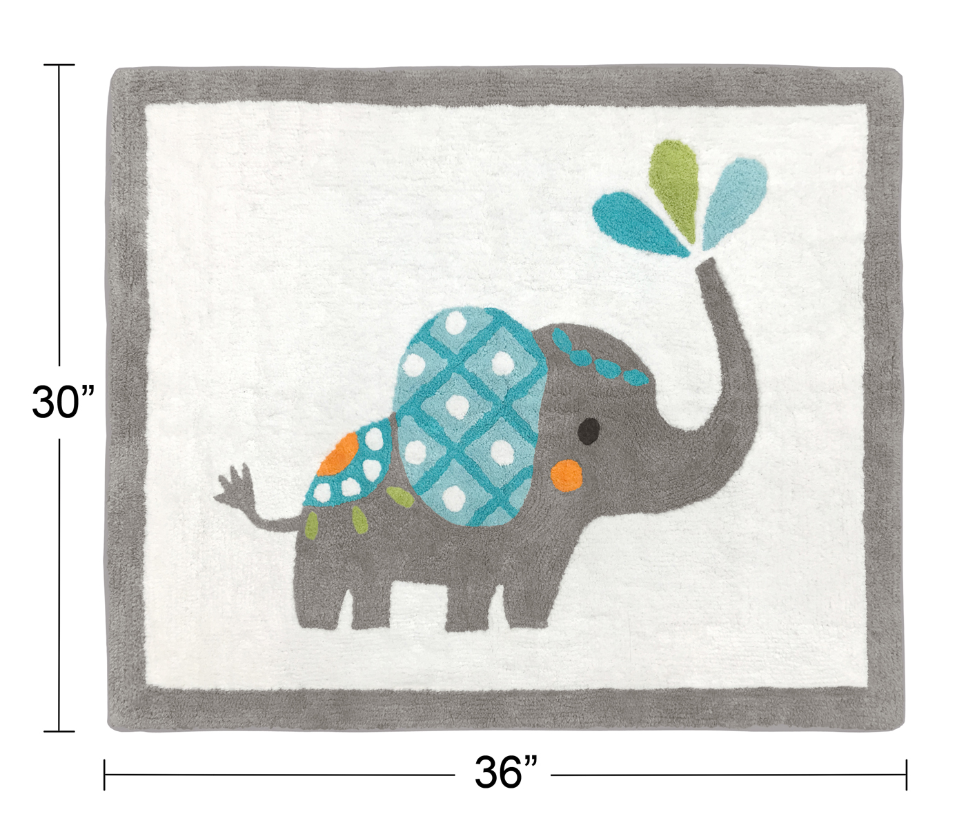Mod Elephant Floor Rugs will help complete the look of your Sweet Jojo Designs room. Made with 100% cotton yarn, these hand tufted, super soft rugs will feel as good as they look! These rugs have a non-skid backing so they can easily be used in the bedroom, bathroom, or any room in your home.