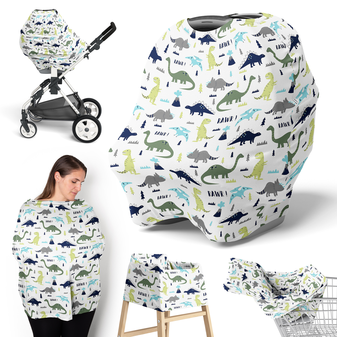 This soft and stretchy multi use baby car seat canopy and nursing cover will be your next newborn essential. The 5 in 1 cover makes the perfect baby car seat cover, baby nursing cover, breastfeeding cover, baby high chair cover, baby shopping cart cover, infant stroller cover, baby carrier cover, infinity scarf and much more for both you and your infant.