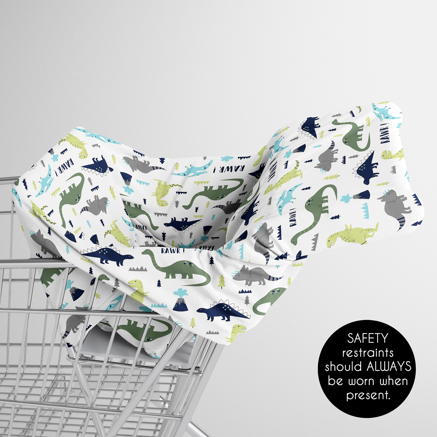 Makes the perfect gift to coordinate with Sweet Jojo Designs nursery bedding, crib sheets, changing pad covers, nursing pillow covers, room decor and baby carseat covers. This is a great nursery gift for baby shower gifts, christenings, and gender reveals. Please note: should be removed while child is sleeping or unsupervised.Item# Multi-ModDino-BU-GR-PRT