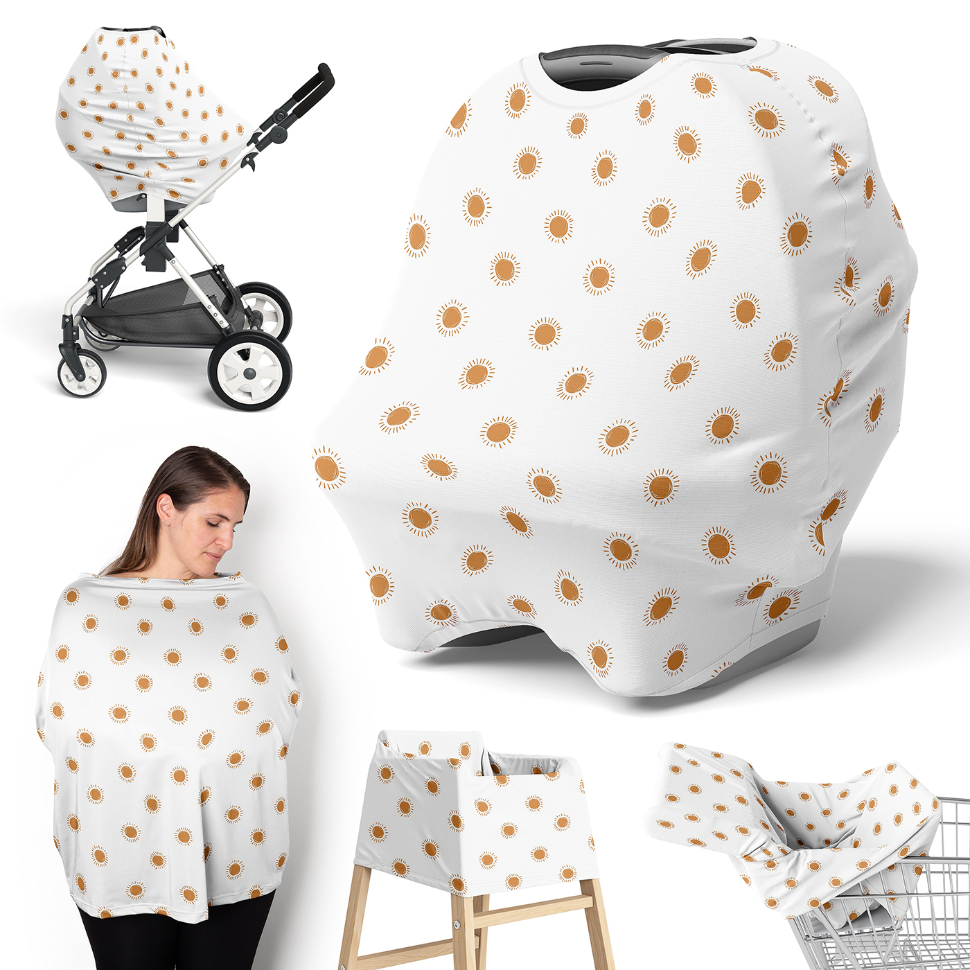 5 in 1 Multi Use Baby Cover Measures 28in. x 28in.95% Rayon/5% Spandex Jersey Stretch Knit - Machine wash cold, tumble dry low.Featuring exclusive fabric of a pumpkin rust orange and white boho sun retro bohemian celestial sky desert sunshine outdoors nature minimalist print.This soft and stretchy multi use baby car seat canopy and nursing cover will be your next newborn essential. The 5 in 1 cover makes the perfect baby car seat cover, baby nursing cover, breastfeeding cover, baby high chair cover, baby shopping cart cover, infant stroller cover, baby carrier cover, infinity scarf and much more for both you and your infant.Makes the perfect gift to coordinate with Sweet Jojo Designs nursery bedding, crib sheets, changing pad covers, nursing pillow covers, room decor and baby carseat covers. This is a great nursery gift for baby shower gifts, christenings, and gender reveals. Please note: should be removed while child is sleeping or unsupervised.Item# Multi-Sun-WH-PM