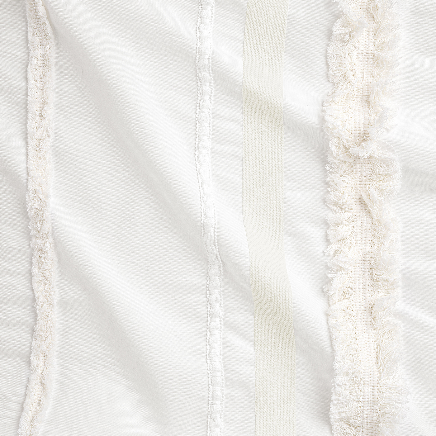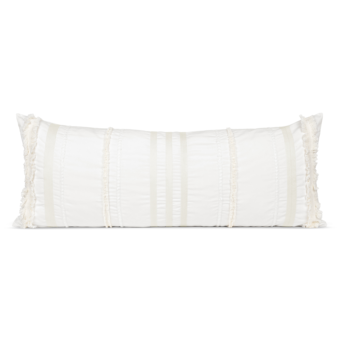 (1) Ivory Off White Boho Shabby Chic Striped Modern Farmhouse Stitch Macrame Textured Stripes Embroidery Bohemian Rustic Tufted Geometric Fringe Trim Southwestern Lines Body Pillow Case