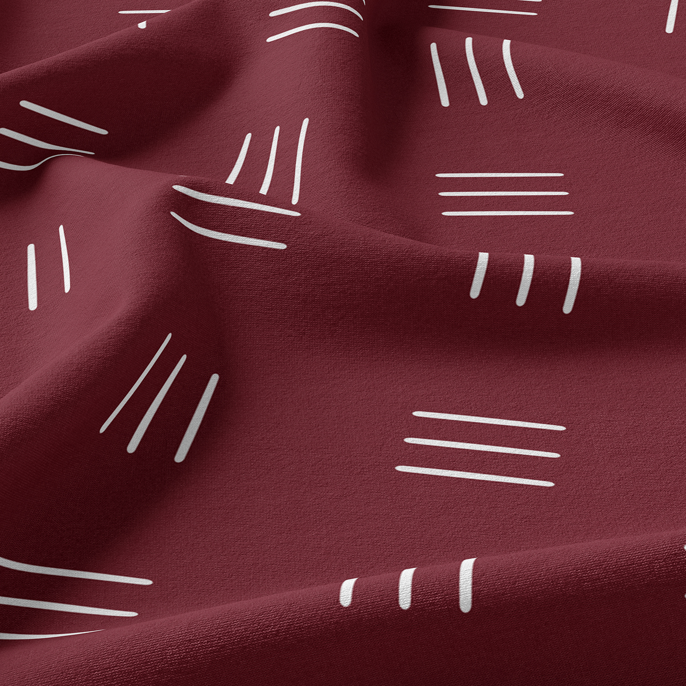 (1) Burgundy Wine Red and White Boho Mudcloth Bohemian Woodland Tribal Southwest Mud Cloth Hatch Triple Line Brushed Microfiber Body Pillow Case