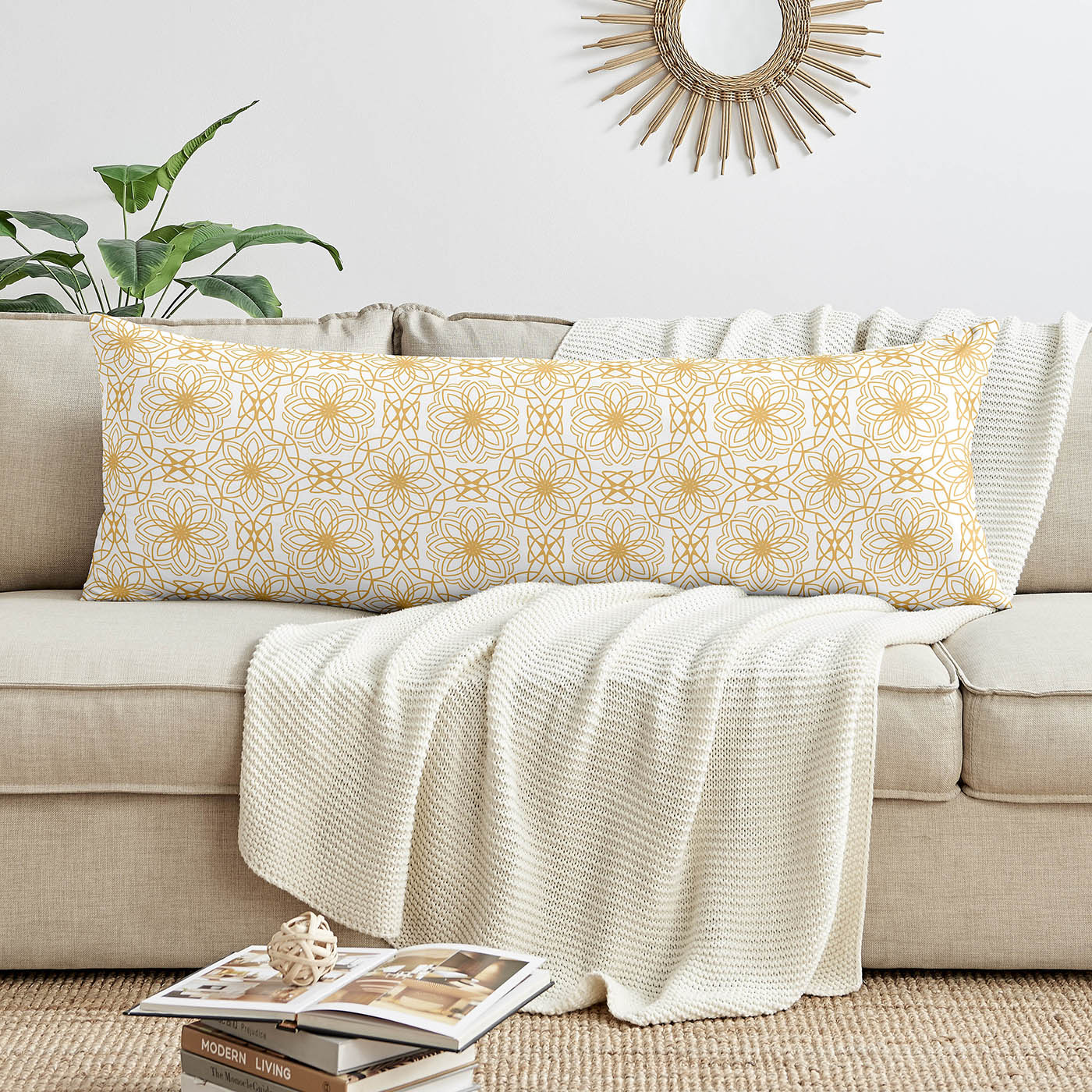 This Sweet Jojo Designs Yellow and White Bohemian geometric mandala Body Pillow Cover will create a unique and eye-catching touch to any room. This body pillow cover has an intricate mandala pattern, creating a stunning and elegant. This pillowcase combines an exclusive mix of both modern and boho design, featuring a geometric pattern. It uses the gorgeous color palette of mustard yellow and white. This unique body pillowcase will add a bright and colorful urban feel to any room. This trendy pillow cover uses soft and wrinkle resistant brushed microfiber fabrics for long lasting wear and luxurious feel. The high-quality microfiber fabric is soft and lightweight, making it perfect for all-season use. The hidden zipper closure makes for easy care and convenient use. This Sweet Jojo Designs luxury decorative body pillow cover is machine washable for simple care. Whether on a bed, sofa, or in a dorm room this body pillow cover is a great and inexpensive way to get that instant makeover.
