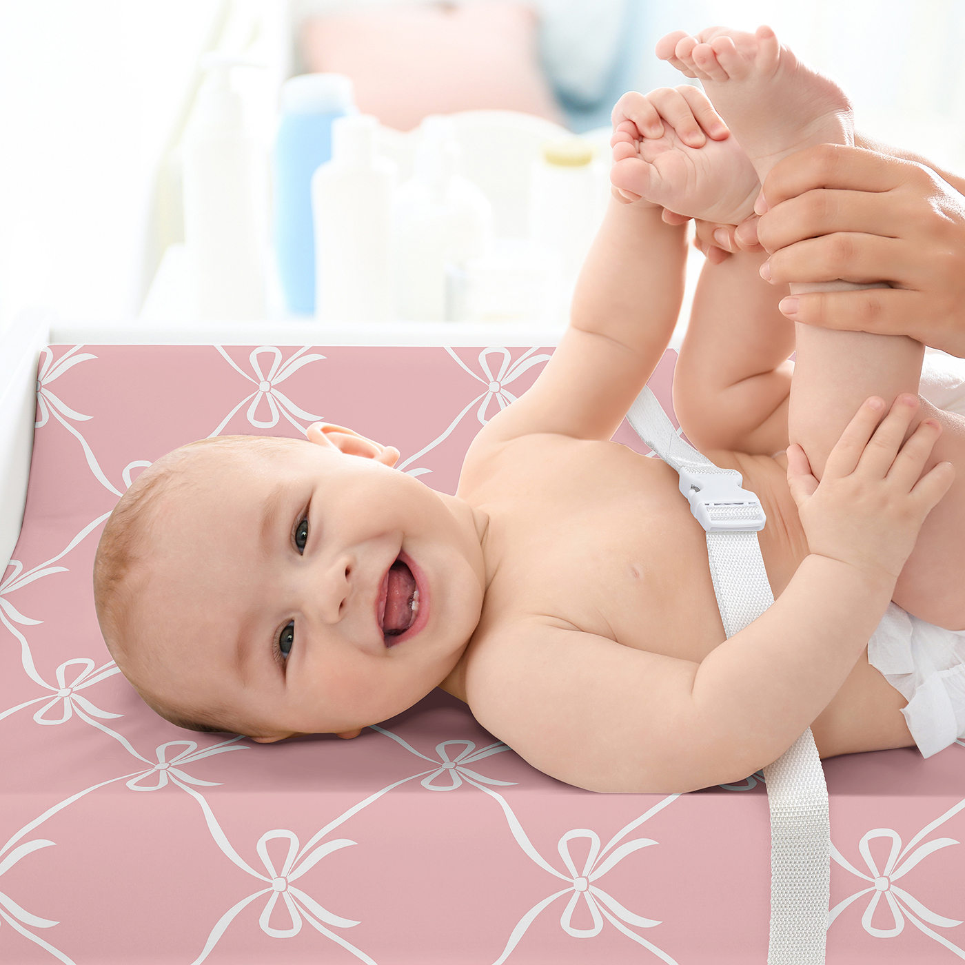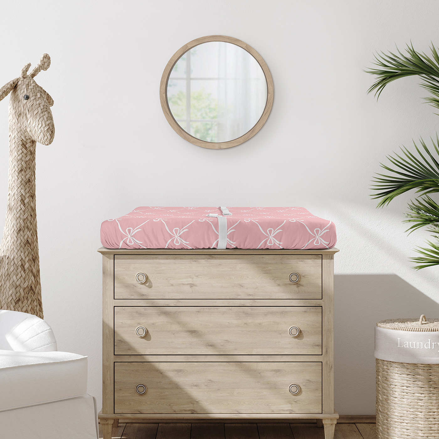 SNUG AND COZY: A Diaper Changing Pad Cover Sheet that measures 17in. x 32in. offers a practical solution for parents seeking comfort and convenience. Made with elastic edges ensures a snug, secure fit, preventing the cover from shifting during use. The soft brushed microfiber fabric provides a comfortable surface for your little one. Machine washable, tumble dry low. This elegant girls changing table sheets features a coral & blush pink shabby chic, feminine, elegance, ballet, classic bow print.DESIGNED IN THE USA: By real parents who understand the need for comfort, practicality, and style. Sweet Jojo Designs is a small, women owned business. The mom's on our team know a changing table cover is a first priority for your baby essentials for a completed look. As a proud Baby Safety Alliance member who rigorously tests products to meet or exceed CPSC safety standards, Sweet Jojo Designs is dedicated to creating high-quality products that meet the high standards for you and your family.CONVENIENT & HYGENIC: Changing pad sheets are an essential buy for parents who want to keep their baby’s space clean. Since diaper changes can sometimes be messy, a cover for changing pad creates a protective layer, preventing direct contact with spills & accidents. It's easily removed for washing to ensure a sanitary surface. Changing table topper covers help create a cleaner & more sanitary surface for your diaper changing station. Use with changing pad liners for ultimate protection. PERFECT GIFT: Add changing pad covers to your list of must haves! Include one on your gift registry, in a baby shower gift basket or as a gender reveal present as an easy way to prepare for a new arrival. Our baby diaper changing pad covers fit most standard & contoured changing pads with a fully elastic band all the way around the edges to make changes effortless so you can focus on what matters most to you & your family. Remember, you can never have too many covers for diaper changing pads! NURSERY DESIGN MADE EASY: If you have a nursery to decorate, we have endless coordinating options to help. A nursery theme can be planned entirely around a baby changing pad cover. Sweet Jojo Designs makes decorating simple with matching crib bedding sets, toddler bedding sets, crib sheet set, crib bed sheets, nursing covers, milestone blankets, wall decor, decorative accessories, swaddles, curtains and window treatments to make sure you have all you need to complete the look of your baby room.Item# PadSheet-Ballet-BOW-PINK