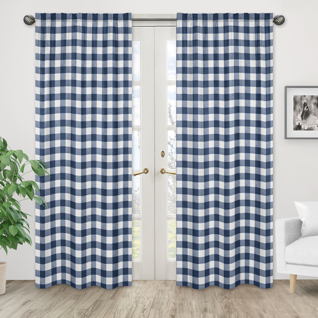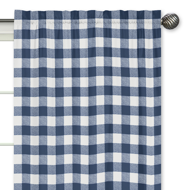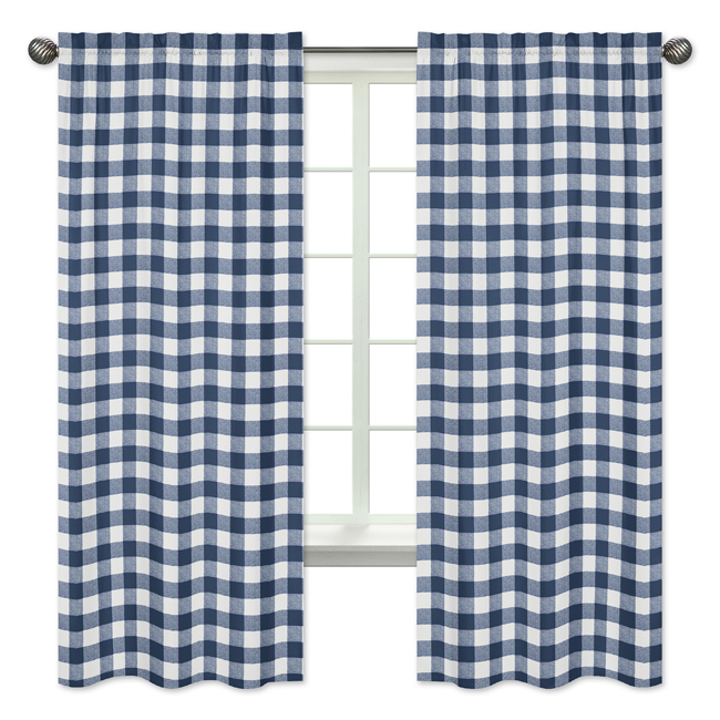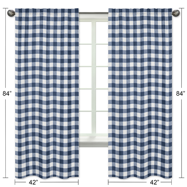 Buffalo Check Navy Blue and White Window Curtain Panel Set will help complete the look of your Sweet Jojo Designs room. These window treatments instantly change the look and feel of any room, adding layers of warmth and style. Each panel measures 42in. x 84in. Fits standard rods up to .75 inches in diameter.