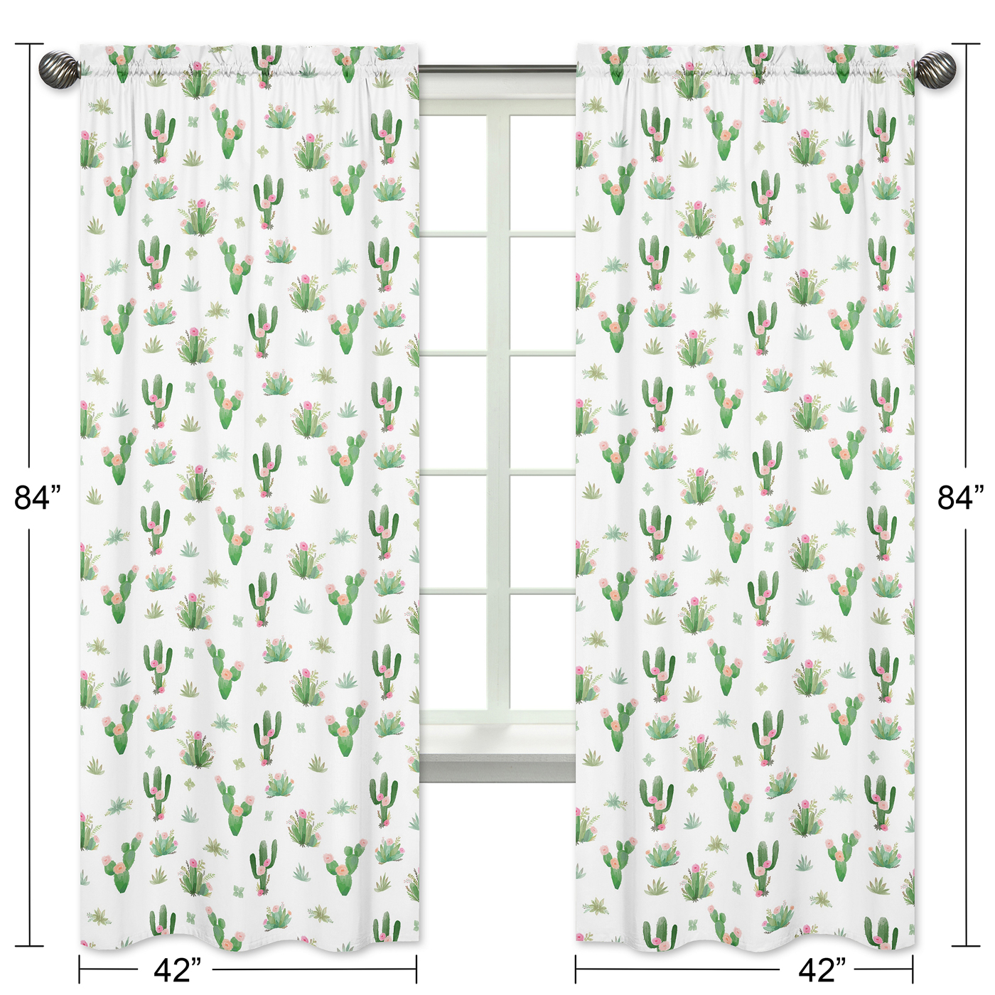 Cactus Floral Window Curtain Panel Set will help complete the look of your Sweet Jojo Designs room. These window treatments instantly change the look and feel of any room, adding layers of warmth and style. Each panel measures 42in. x 84in. Fits standard rods up to .75 inches in diameter.