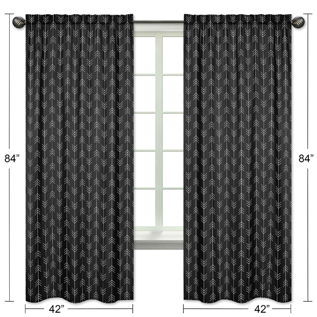 Black and White Lumberjack Window Curtain Panel Set will help complete the look of your Sweet Jojo Designs room. These window treatments instantly change the look and feel of any room, adding layers of warmth and style. Each panel measures 42in. x 84in. Fits standard rods up to .75 inches in diameter.