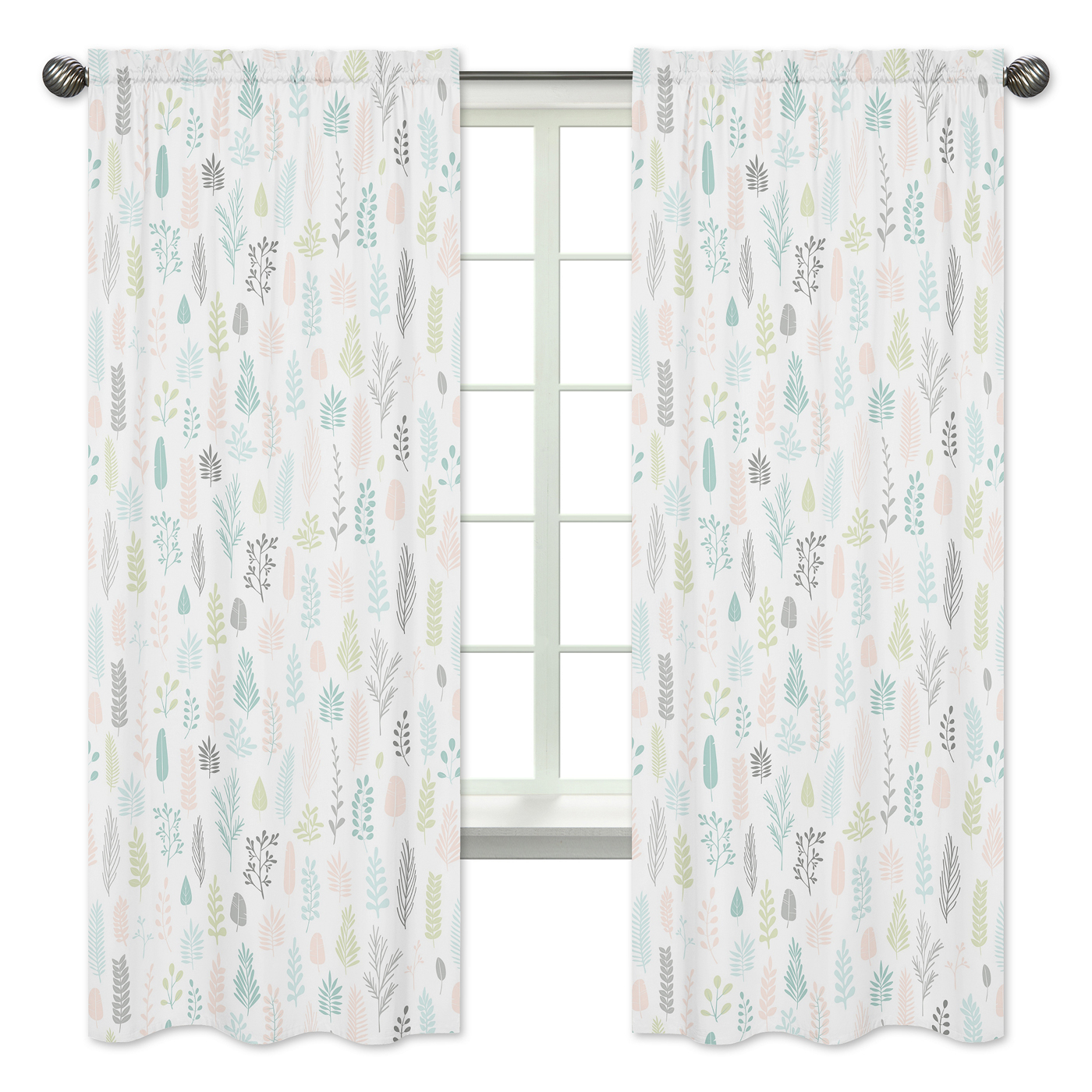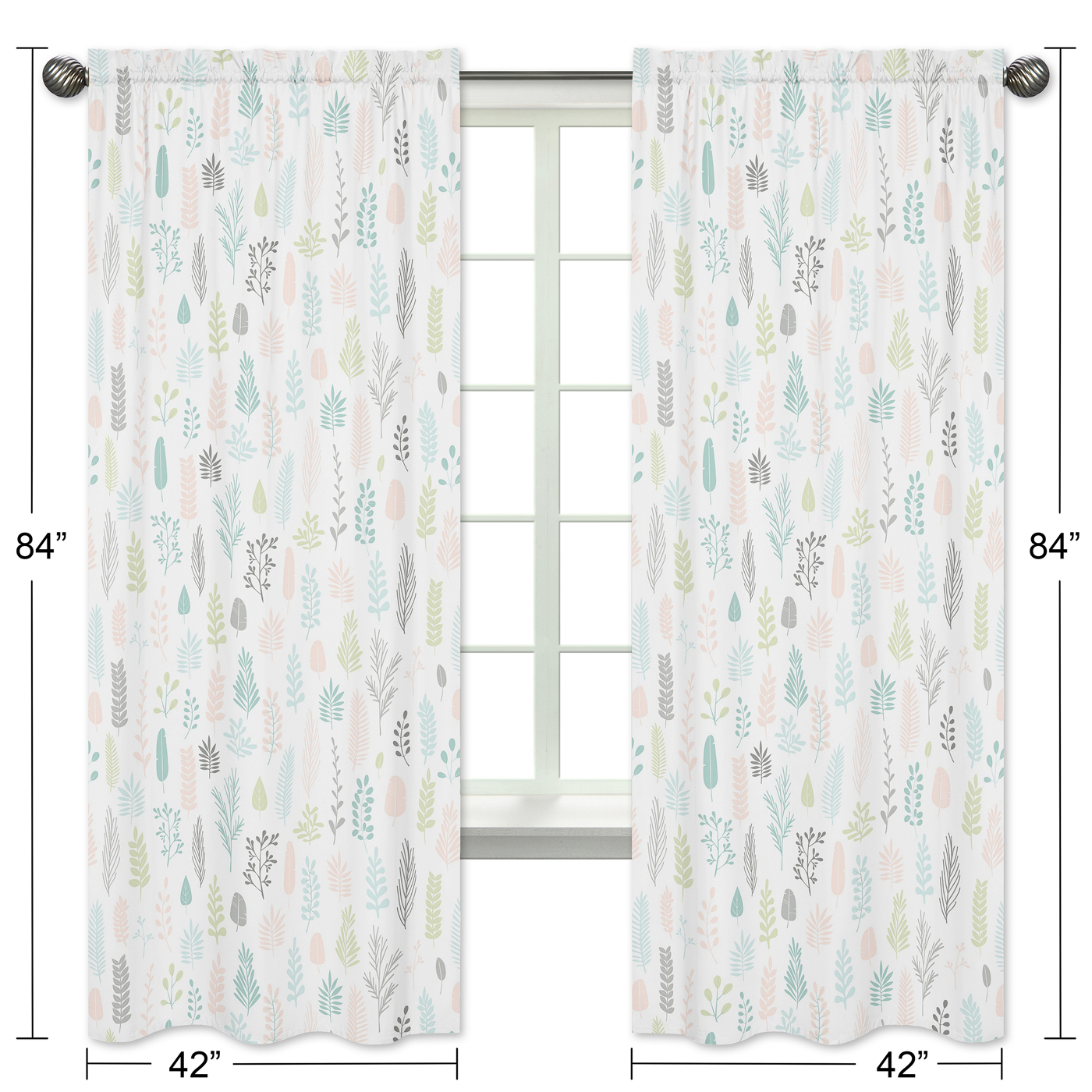 Pink and grey leafy botanical print window curtain panel Set will help complete the look of your Sweet Jojo Designs room. These window treatments instantly change the look and feel of any room, adding layers of warmth and style. Each panel measures 42in. x 84in. Fits standard rods up to .75 inches in diameter.