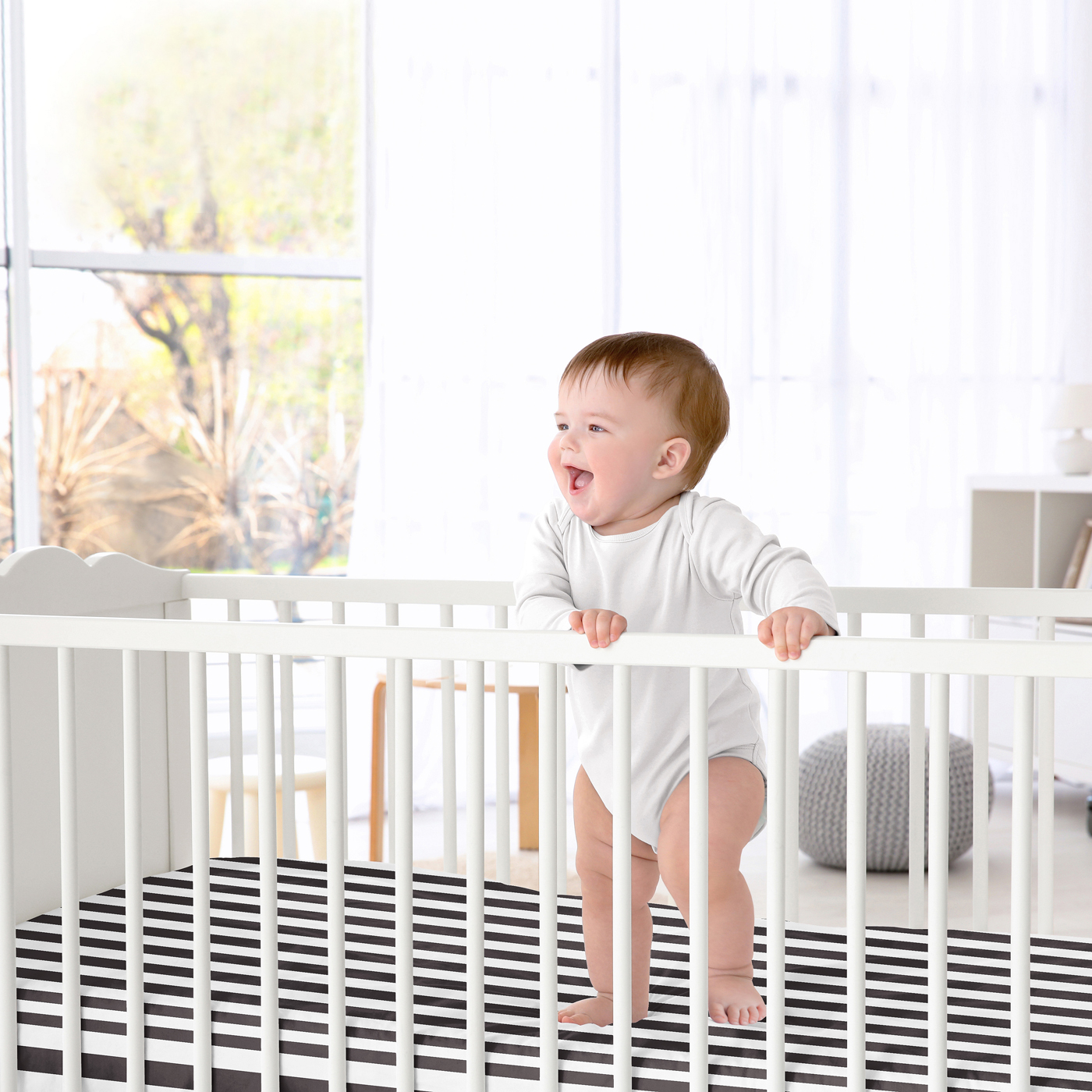 Paris fitted crib sheets will help complete the look of your Sweet Jojo Designs nursery. This black and white stripe brushed microfiber sheet fits all standard crib and toddler mattresses and is machine washable for easy care. Dimensions: 52 in x 28 in x 8 in.