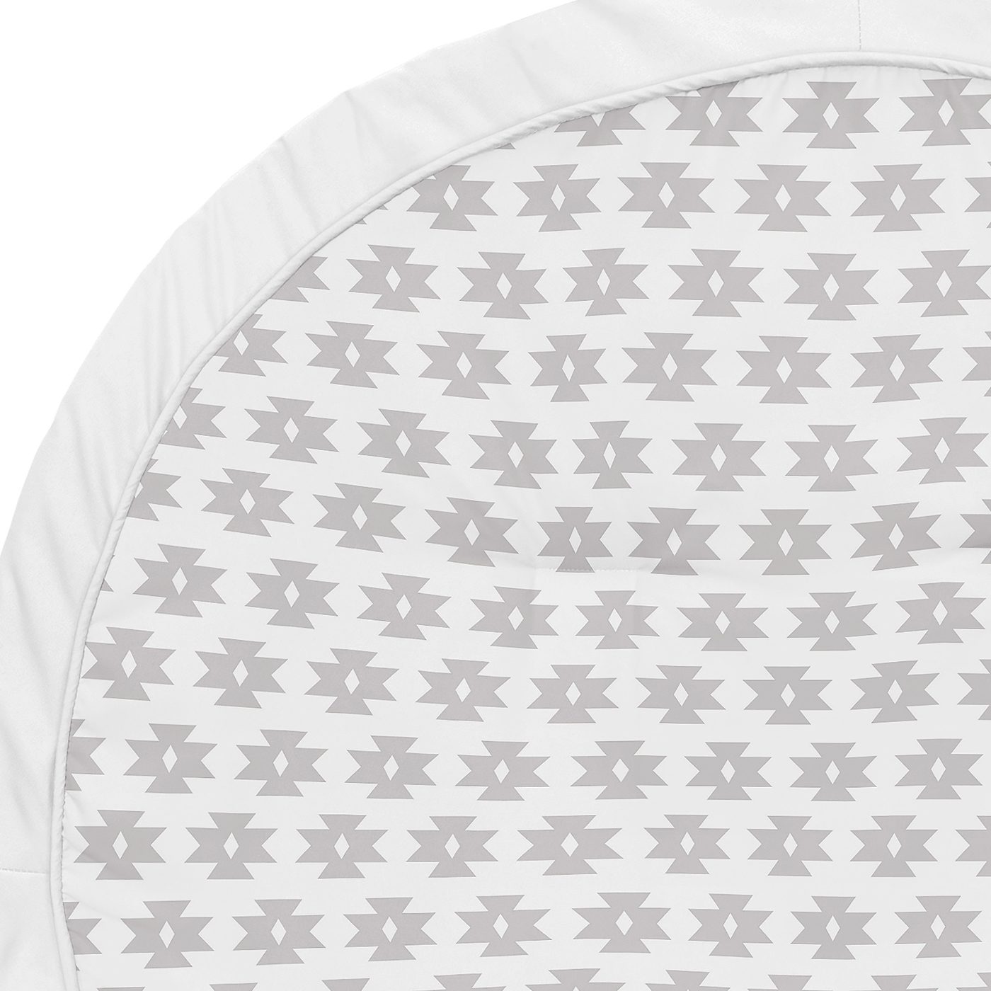 Playmat is designed using a grey and white geometric print and finished with white piping and border - Brushed Microfiber
