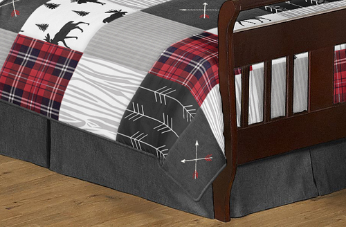 Rustic Patch Toddler Bedding set will help you create an incredible room for your child. This stylish designer bedding set uses an impressive array of striking prints combining a moose print, an arrow print, a wood grain print and red plaid flannel. This collection uses the stylish colors of grey, red, black and white. The design uses brushed microfiber, denim, corduroy and flannel fabrics that are machine washable for easy care. This wonderful set will fit most standard cribs and toddler beds.