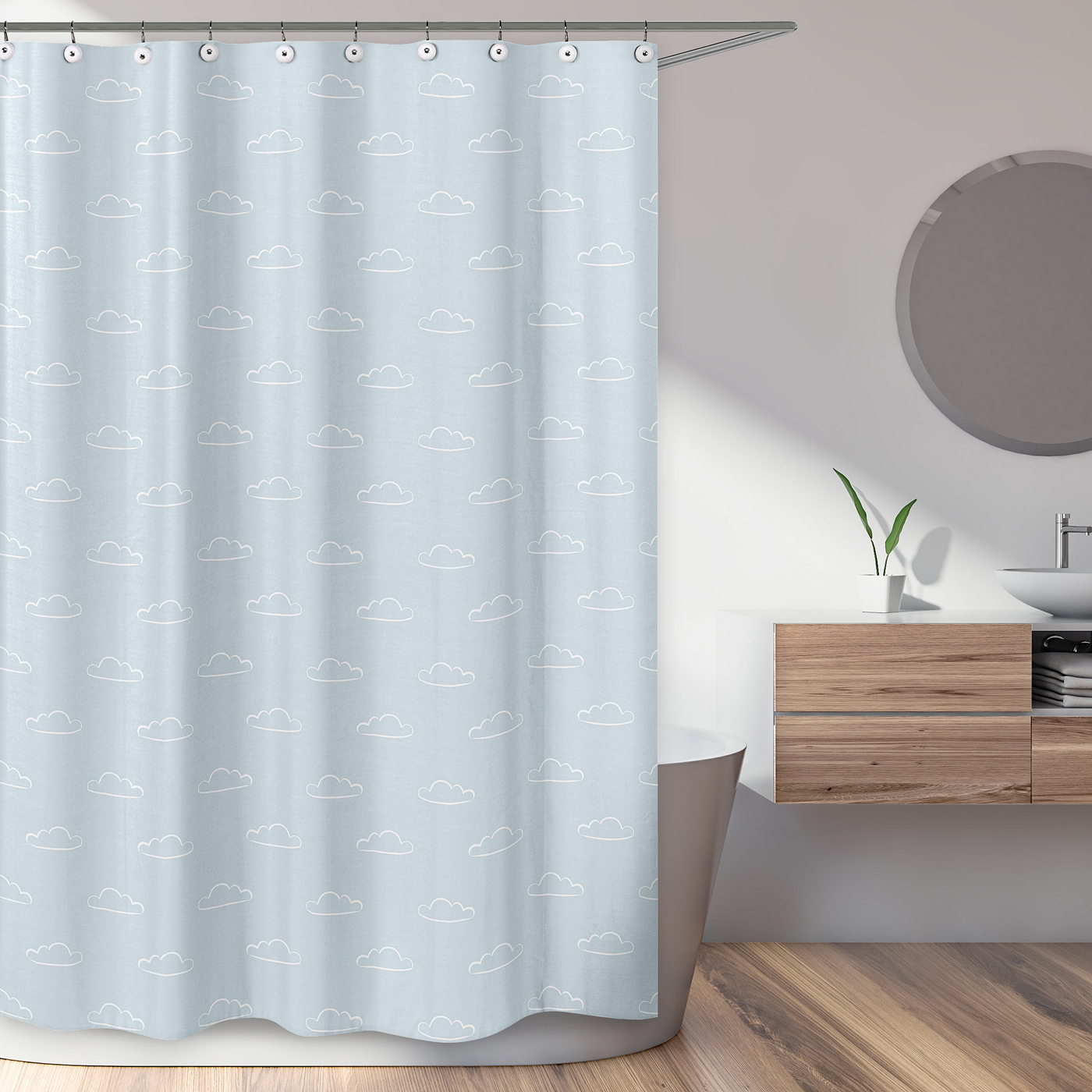 This design has matching accessories such as window treatments, hampers, bed skirts and pillowsItem# ShowerCurtain-Airplane-RD-BU-CLOUD