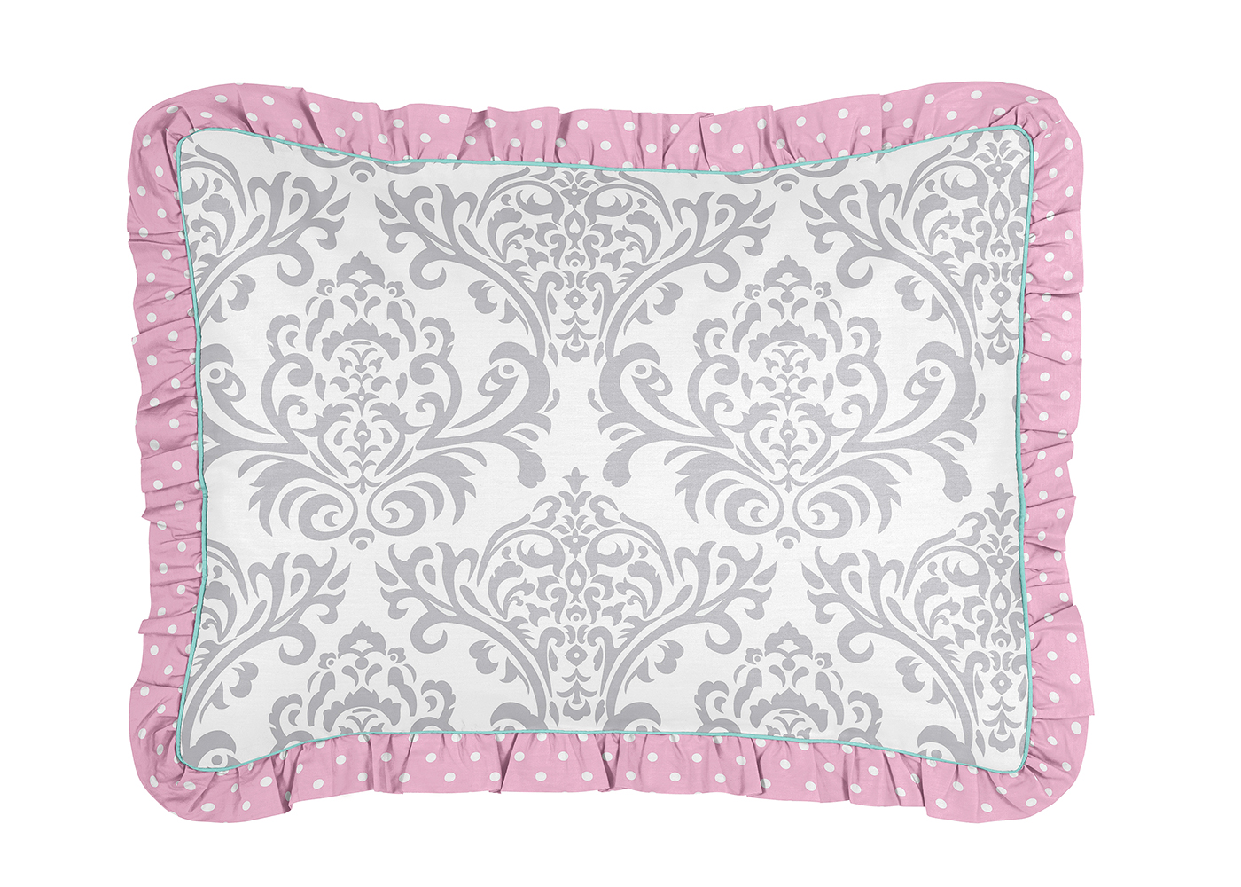 Skylar Twin Bedding set will help you create an incredible room for your child. This girl bedding set features a chic gray and white damask, a coordinating candy pink and white polka dot, and solid turquoise cotton. This collection uses the stylish colors of candy pink, turquoise blue, gray and white. The design uses 100% cotton fabrics that are machine washable for easy care. This wonderful set will fit all standard twin beds.