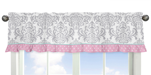 Skylar Window Valances will help complete the look of your Sweet Jojo Designs room. This valance softens the look of the window and obscures pulled up blinds. It will coordinate nicely with your Sweet Jojo Designs bedding or can be used as an accent with your own room design.