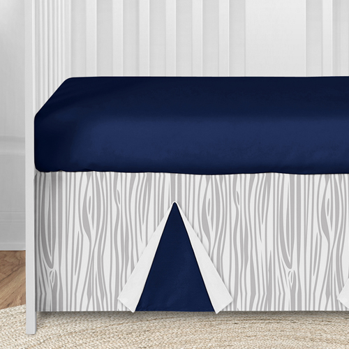Navy and White Stag 5 pc Crib Bedding set has all that your little bundle of joy will need. Let the little one in your home settle down to sleep in this incredible nursery set. This baby boy bedding set features a contemporary stag print, a coordinating wood grain print, and solid navy blue. This collection uses the stylish colors of navy blue, grey, and crisp white. The design uses brushed microfiber fabrics that are machine washable for easy care. This wonderful set will fit most standard cribs and toddler beds.