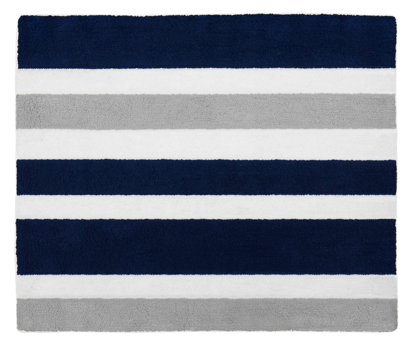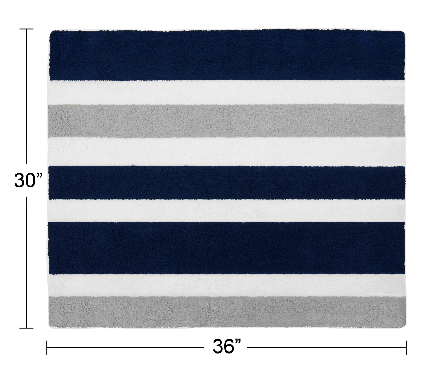 Navy and Gray Stripe Floor Rugs will help complete the look of your Sweet Jojo Designs room. Made with 100% cotton yarn, these hand tufted, super soft rugs will feel as good as they look! These rugs have a non-skid backing so they can easily be used in the bedroom, bathroom, or any room in your home.