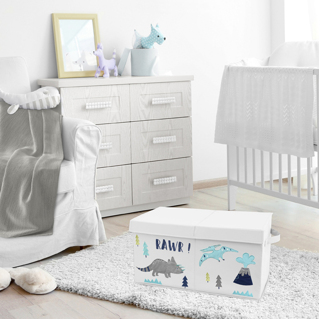 Sweet Jojo Designs fabric toy bins are perfect for storing and organizing unruly clutter in the nursery, playroom, classroom, office or bedroom. Each toy box features an attached flip lid to keep books, stuffed animals, craft supplies, clothing and other items out of sight and out of mind. It's also the perfect alternative to boring clothing hampers and baskets. This kid friendly storage solution is collapsible to save space when not in use.