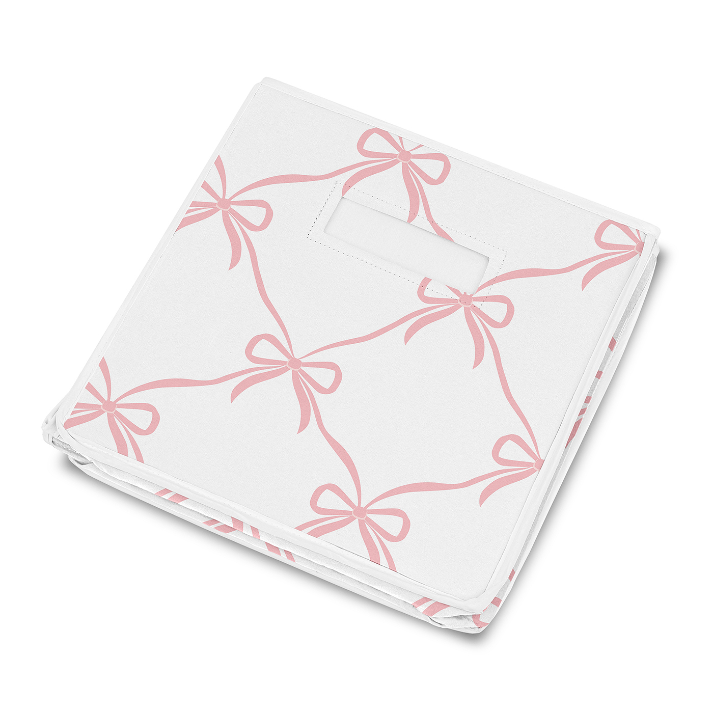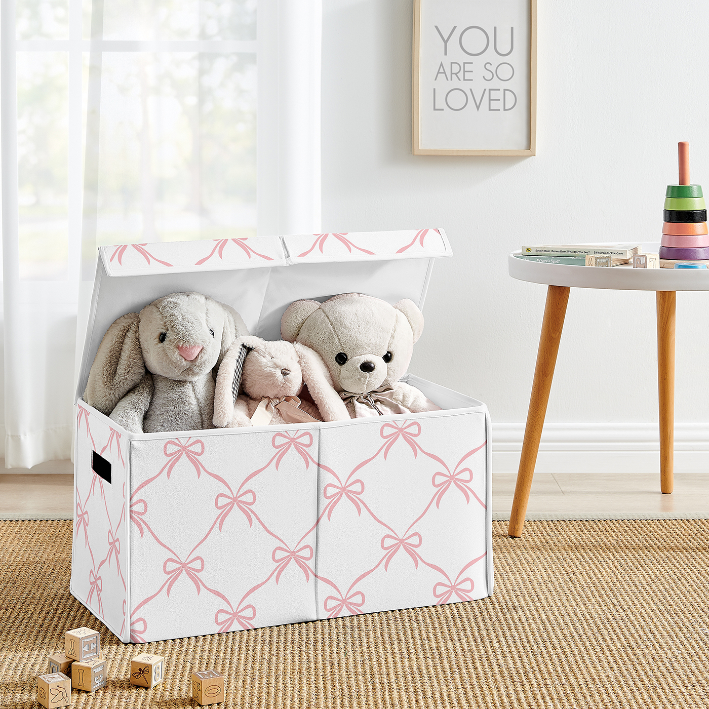 UPGRADE YOUR HOME STORAGE: with a Collapsible Storage bin with Lid that measures 21in. x 11in. x 10.5in. Spot clean only. Made with reinforced cut out handles as well as a reinforced flip lid to be able to cover clutter, making this toy basket a versatile must have for any room. This brushed microfiber toy storage organizer features an exclusive design of blush pink & white bows print for the Ballerina, Ballet, Dancer, Princess Collection to bring your elegant, shabby chic themed room together.DESIGNED IN THE USA: By real parents who understand the need for a practical and stylish kids toy storage box. Sweet Jojo Designs is a small, women owned business. The mom's on our team know decorative storage boxes are a priority for your playroom organizational or home storage needs. We use top fabrics and designs to create a fabric toy chest storage box to fit your vision. We've studied the latest trends in vintage pink bows decorative storage boxes with lids to bring you the finest product.MULTI-FUNCTIONAL TOY ORGANIZER: Use this storage basket with lid to store all your household clutter while also serving as decorative room decor. Don't stop there! This kids toy box can be placed in your bedroom, classroom, closet, nursery, apartment, attic, basement, bathroom, college dorm, den, family room, foyer, gaming room, guest room, home gym, home office, home theater, kids bed room, kitchen, living room, mud room, pantry, play room, garage and more to make the most out of every space.PERFECT GIFT: Fill a toy chest for girls with other items to make a functional gift basket that's also a storage solution. This kids storage organizer is perfect for holding children’s items, newborn essentials, or home goods like blankets, pillows, Montessori educational supplies, toys, stuffed animals, sheets, books, linens, towels, clothing, dog toys & more. Upgrade your closet storage, kitchen storage, nursery decor, living room storage or use as your next boo basket for someone special!MATCHING DECOR & ACCESORIES: Coordinates with Sweet Jojo Designs nursery bedding, cribsheets, changing pad covers, nursing pillow covers, duvets, sheet sets, window treatments, wall decor, nursery essentials and home decor accessories. It can also double as a functional decorative alternative to gift bags, gift basket or wrapping paper by holding your wedding gifts, housewarming gift, birthday presents, baby shower gifts and gender reveal presents within the decorative box itself.Item# ToyBin-Ballet-BOW