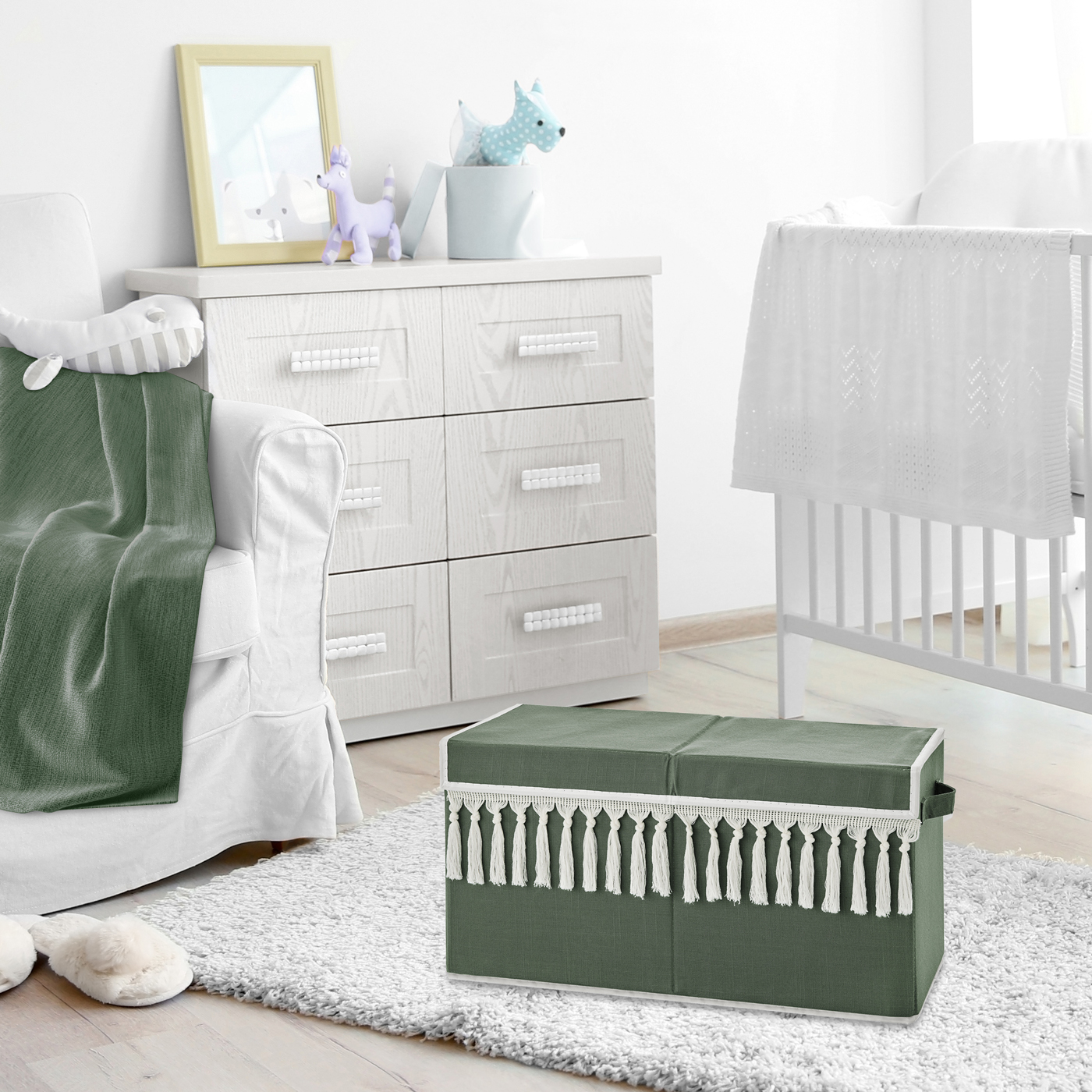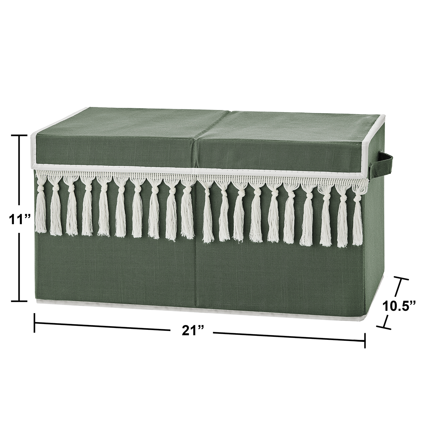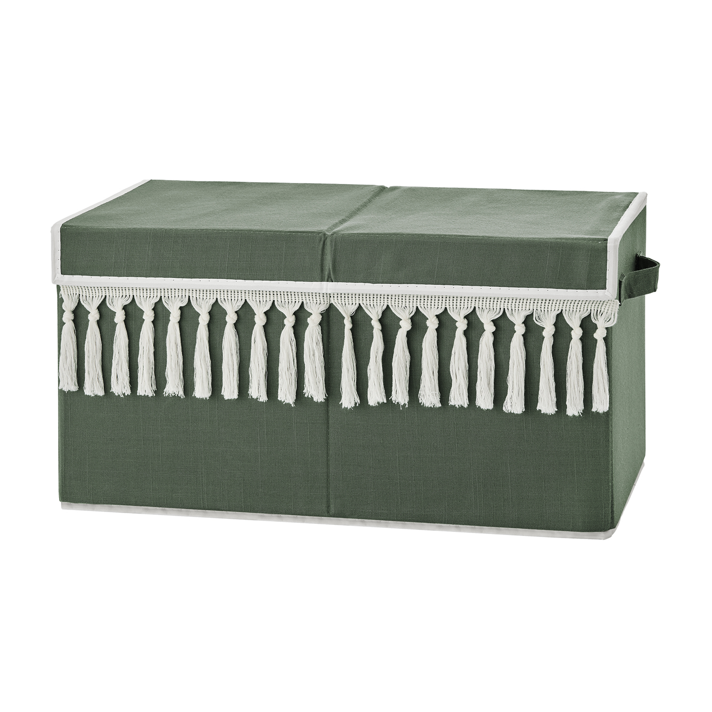Boho Fringe Dark Green and Ivory Collection Fabric Toy Bin Storage