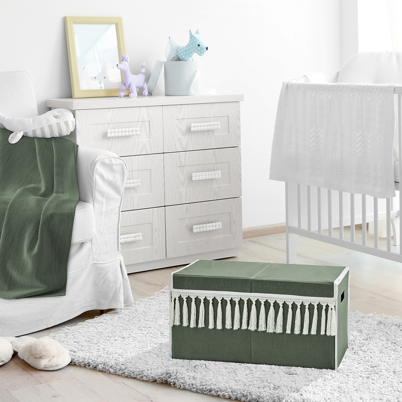 Diamond Tuft Dark Sage Green and Ivory Collection Fabric Toy Bin Storage