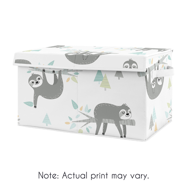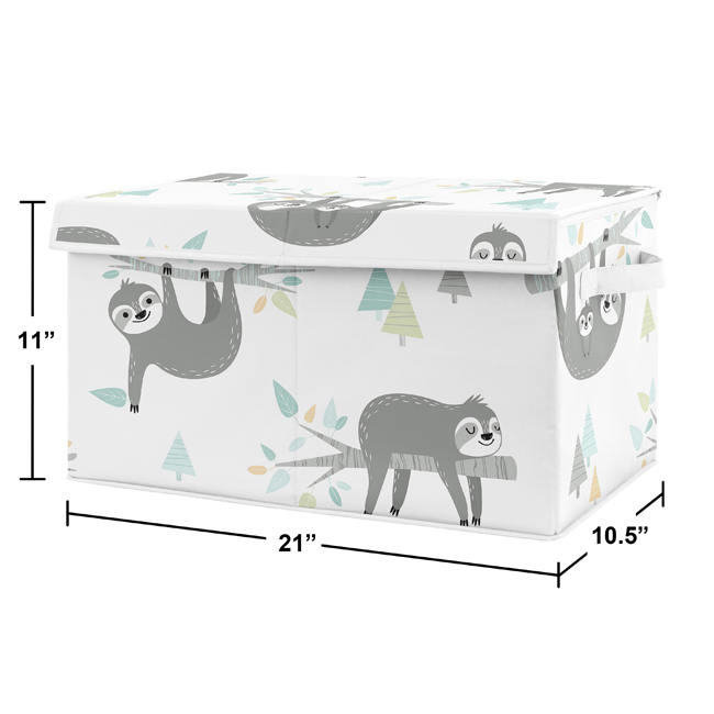 Love the fabric style? Sweet Jojo Designs also makes bedding and decor accessories in this exclusive theme.Item# ToyBin-Sloth-AQ-GY-PRT