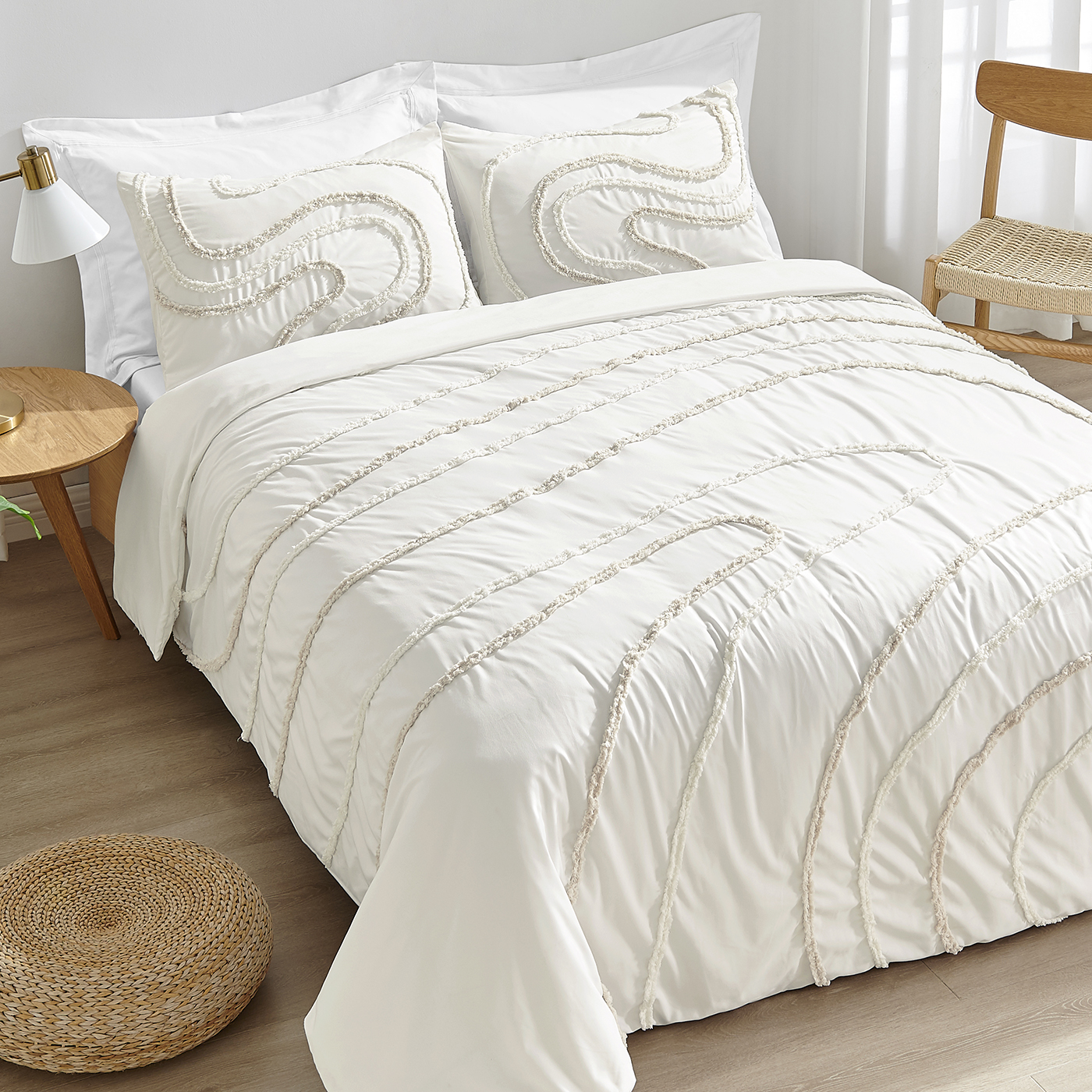 Boho Tufted Swirl Collection Queen Duvet Cover Bedding Set