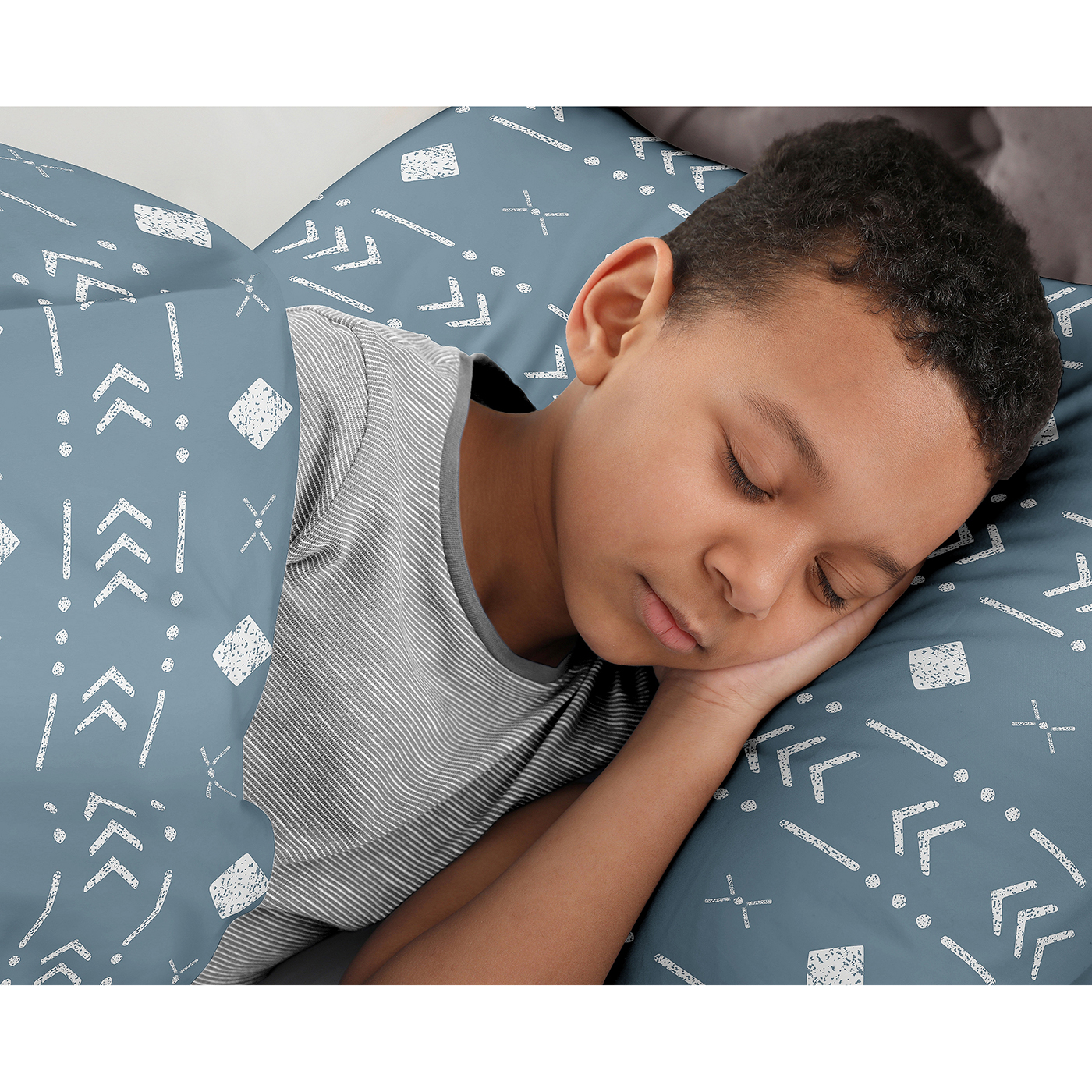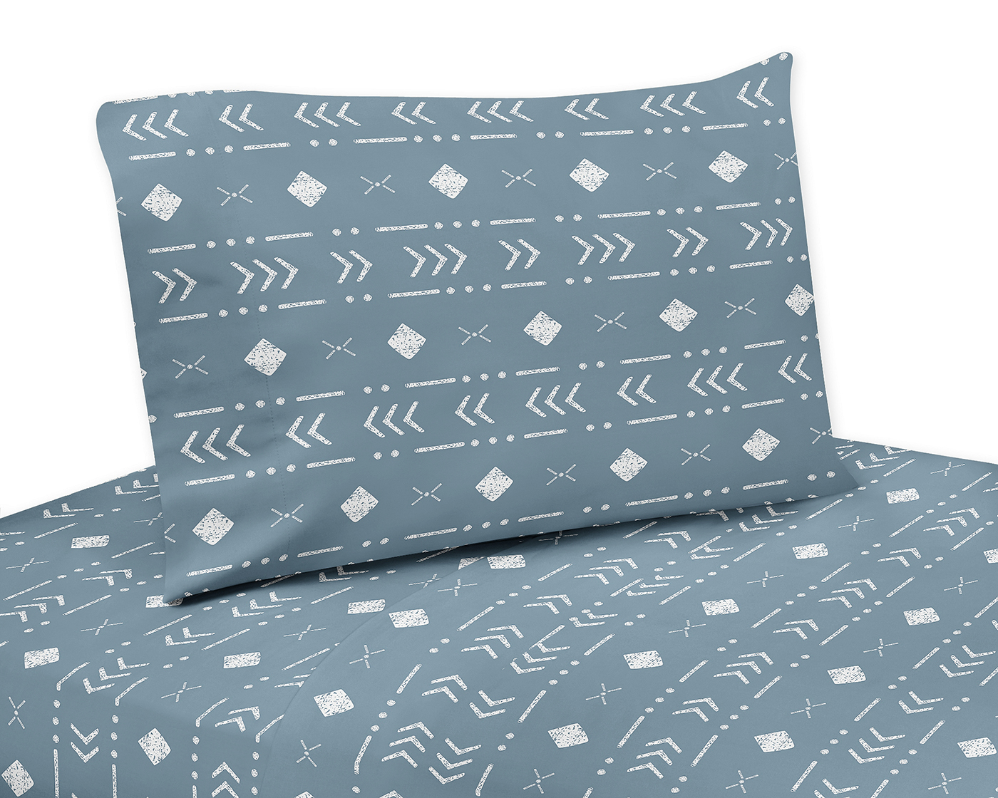 Sweet Jojo Designs Boho Tribal Dark Blue and White 3pc Twin Sheet set is made to coordinate with their Twin Bedding Sets. These sheets use the slate blue and white tribal mudcloth woodland bohemian southwest geometric arrow aztec mud cloth brushed microfiber fabric. This sheet set is machine washable for easy care.