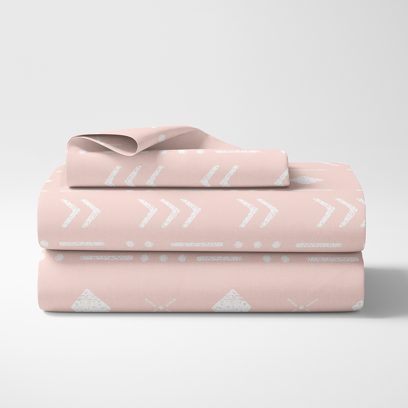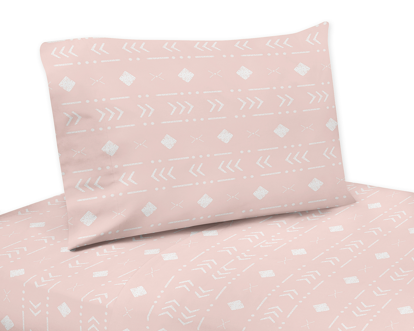 Boho Tribal Blush Pink and White Twin Sheet Set