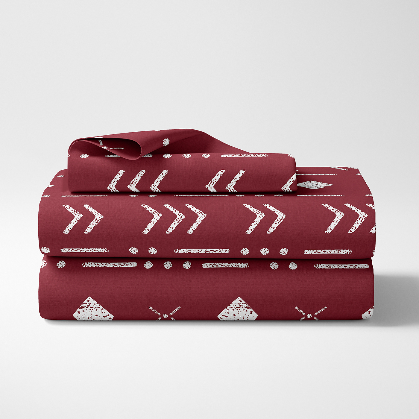Boho Tribal Burgundy Red and White Twin Sheet Set