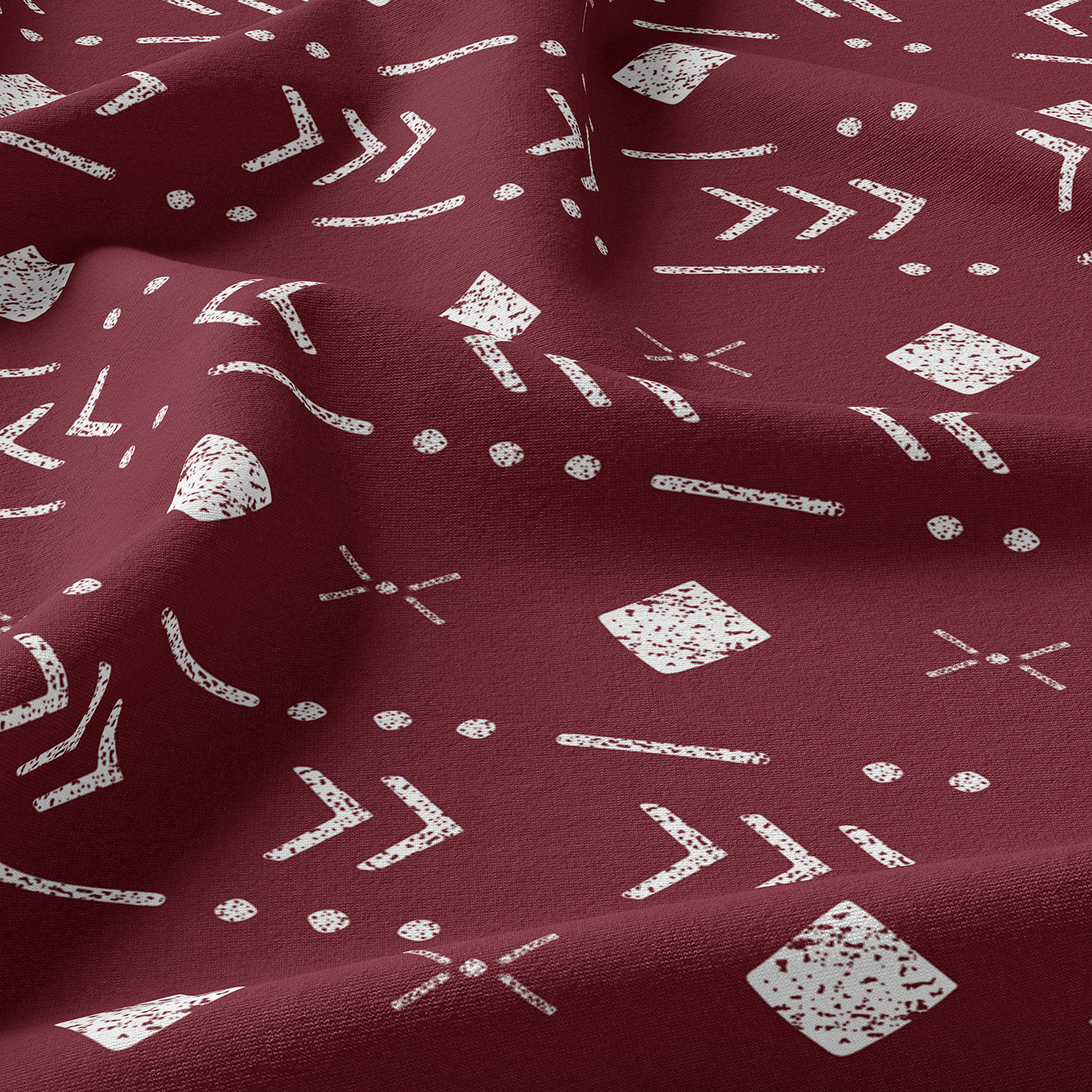 Machine washable burgundy wine red and white tribal mudcloth woodland bohemian southwest geometric arrow aztec mud cloth brushed microfiber fabric.