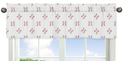 Baseball Patch Window Valances will help complete the look of your Sweet Jojo Designs room. This valance softens the look of the window and obscures pulled up blinds. It will coordinate nicely with your Sweet Jojo Designs bedding or can be used as an accent with your own room design.