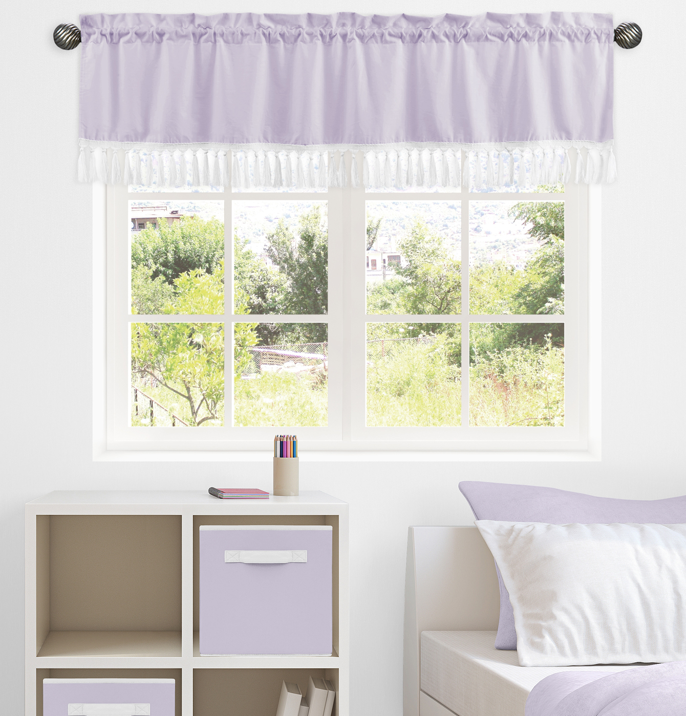 Boho Fringe Lavender Purple and White Collection Window Valance
