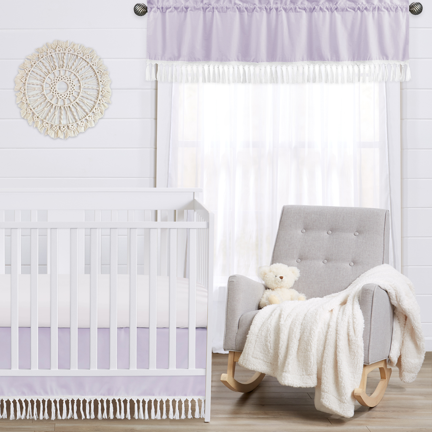 Boho Fringe Lavender Purple and White Collection Crib Bed Skirt