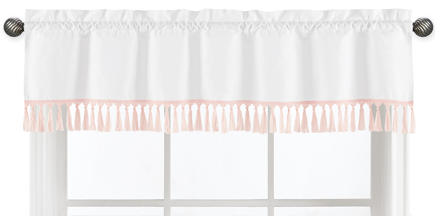 Boho Fringe White and Pink Collection Window Valance
