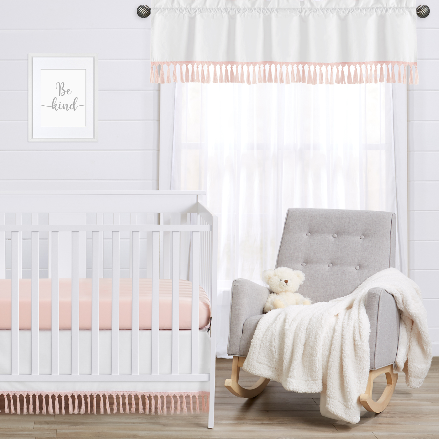 Boho Fringe White and Pink Collection 4 Piece Crib Bedding