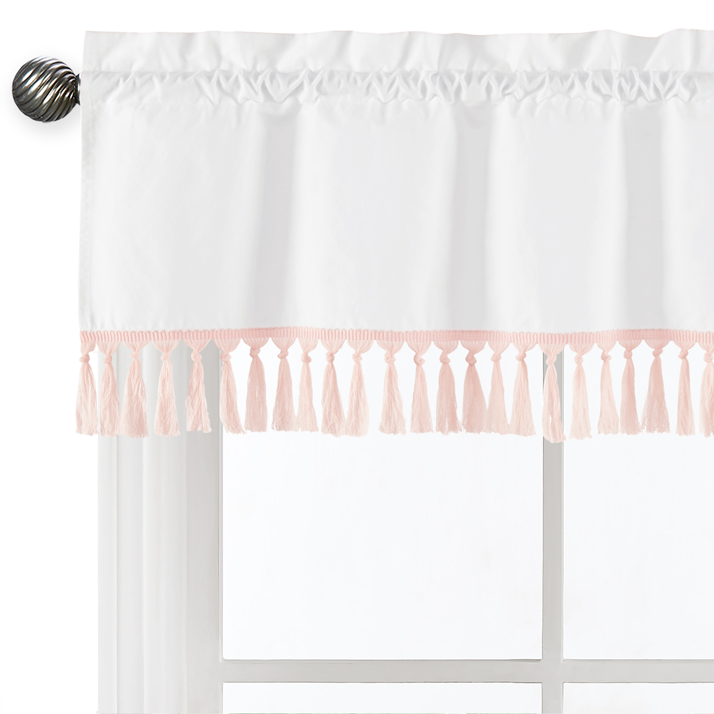 Item# Valance-BohoFringe-WH-PINK