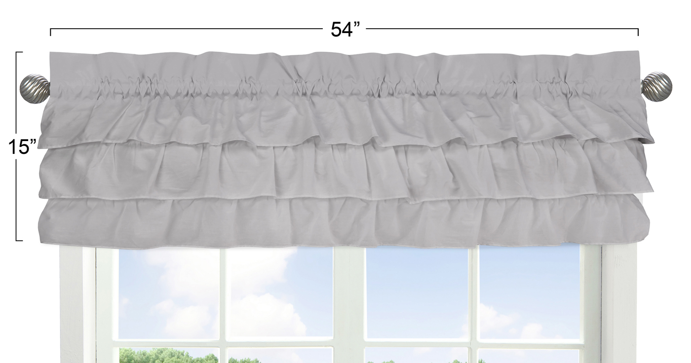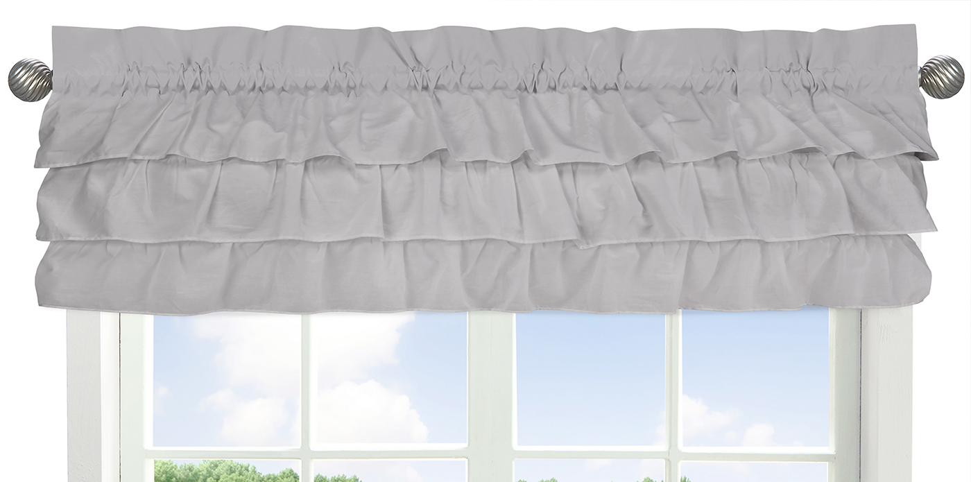 Grey Harper Window Valances will help complete the look of your Sweet Jojo Designs room. This valance softens the look of the window and obscures pulled up blinds. It will coordinate nicely with your Sweet Jojo Designs bedding or can be used as an accent with your own room design.
