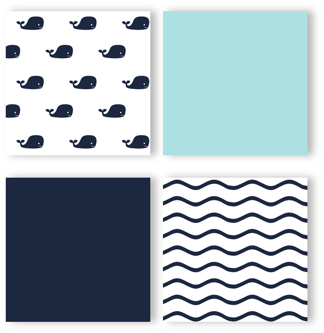 Whale 4 pc Crib Bedding set has all that your little bundle of joy will need. Let the little one in your home settle down to sleep in this incredible nursery set. This unisex baby bedding set features detailed whale and ocean themed appliqués and embroidery works with fun ric rac ribbon accents. This collection uses the stylish colors of navy blue, turquoise, aqua and white. The design uses solid cotton, brushed microfiber and microsuede fabrics that are machine washable for easy care. This wonderful set will fit most standard cribs and toddler beds.